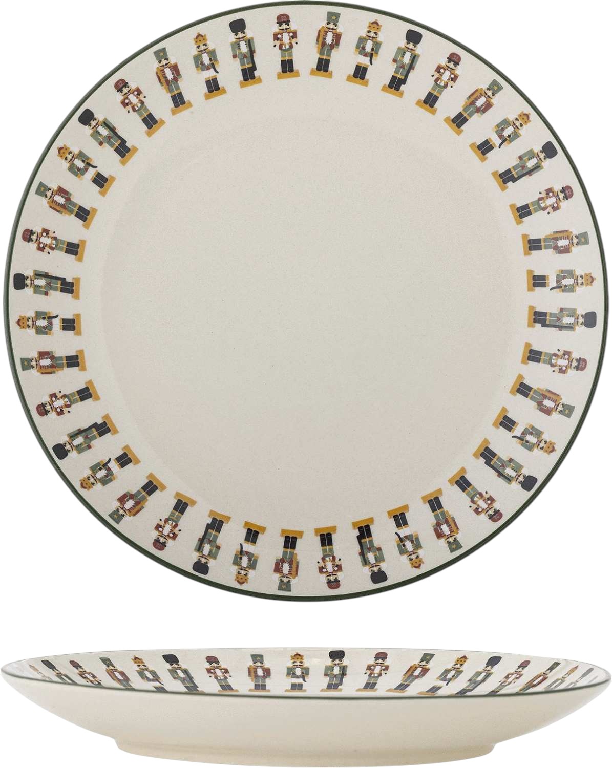 Das detaillierte Nussknacker-Print schafft eine nostalgische und gemütliche Atmosphäre, die perfekt zu sowohl alltäglichen Mahlzeiten als auch besonderen Anlässen passt. Die handgemalte grüne Kante sorgt dafür, dass keine zwei Teller völlig identisch sind, was deiner Sammlung einen authentischen und persönlichen Charakter verleiht. Diese individuelle Note spiegelt die skandinavische Handwerkskunst wider, die Bloomingville so auszeichnet.