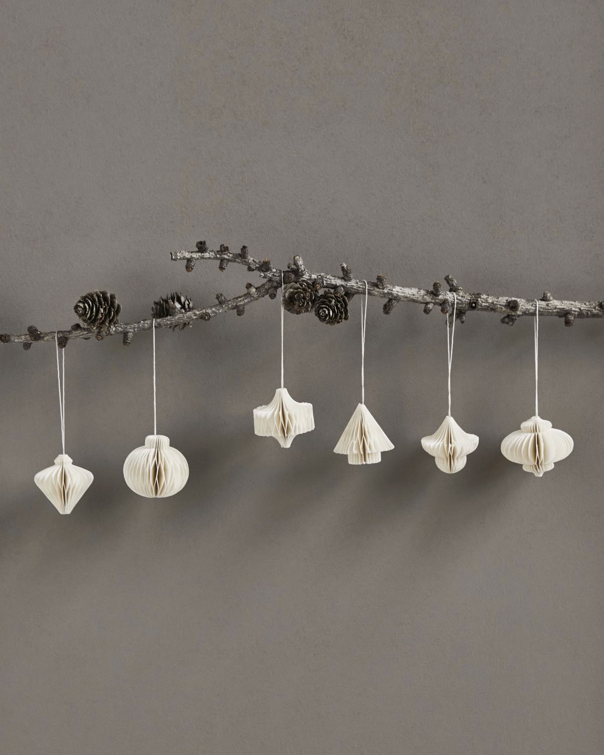 Jedes Ornament in diesem Set überzeugt durch sein einzigartiges Design, wodurch deine Weihnachtsdekoration an Tiefe und Variation gewinnt. Die neutrale off-white Farbgebung macht diese Papierdekorationen außergewöhnlich vielseitig - sie harmonieren sowohl mit traditionellen roten und grünen Weihnachtsfarben als auch mit modernen monochromen Farbkonzepten. Das leichte Papiermaterial verleiht den Ornamenten eine luftige Ausstrahlung und schafft einen reizvollen Kontrast zu schwereren Weihnachtskugeln und anderem Baumschmuck.