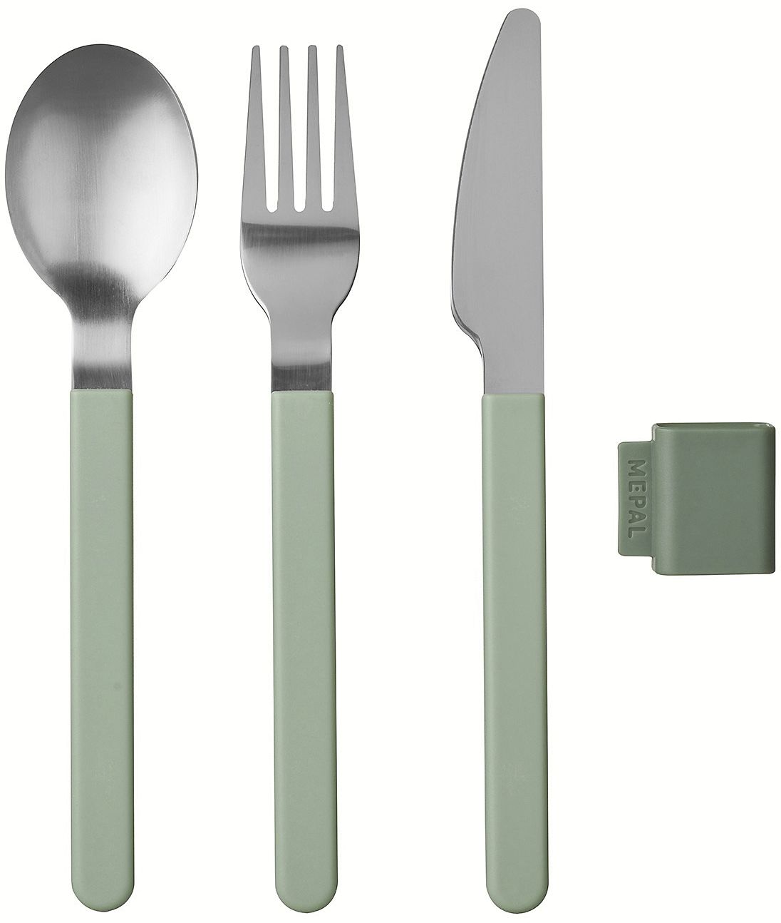 Mit diesem durchdachten Besteckset von Mepal vereinst du skandinavische Elegance mit praktischer Funktionalität in einer harmonischen Kombination. Das stilreine dreiteilige Set in der beruhigenden Farbe Bordic Sage verkörpert die perfekte Balance zwischen Ästhetik und Anwendbarkeit, die modernes skandinavisches Design auszeichnet.Messer, Gabel und Löffel sind aus hochwertigem rostfreiem Stahl gefertigt und verfügen über komfortable Griffe aus robustem ABS-Kunststoff, die dir einen sicheren Halt während des Essens bieten. Die innovative Designserie aus Holland zeichnet sich durch ihre durchdachte Konstruktion aus, bei der das Besteckset in einem praktischen Halter zusammengefasst wird, wodurch es extrem transportfreundlich wird.