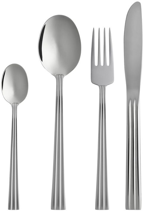 - 16 Teile: 4 Tafelmesser (19,5 cm), 4 Tafelfork (18,2 cm), 4 Esslöffel (18,2 cm), 4 Teelöffel (13,1 cm)