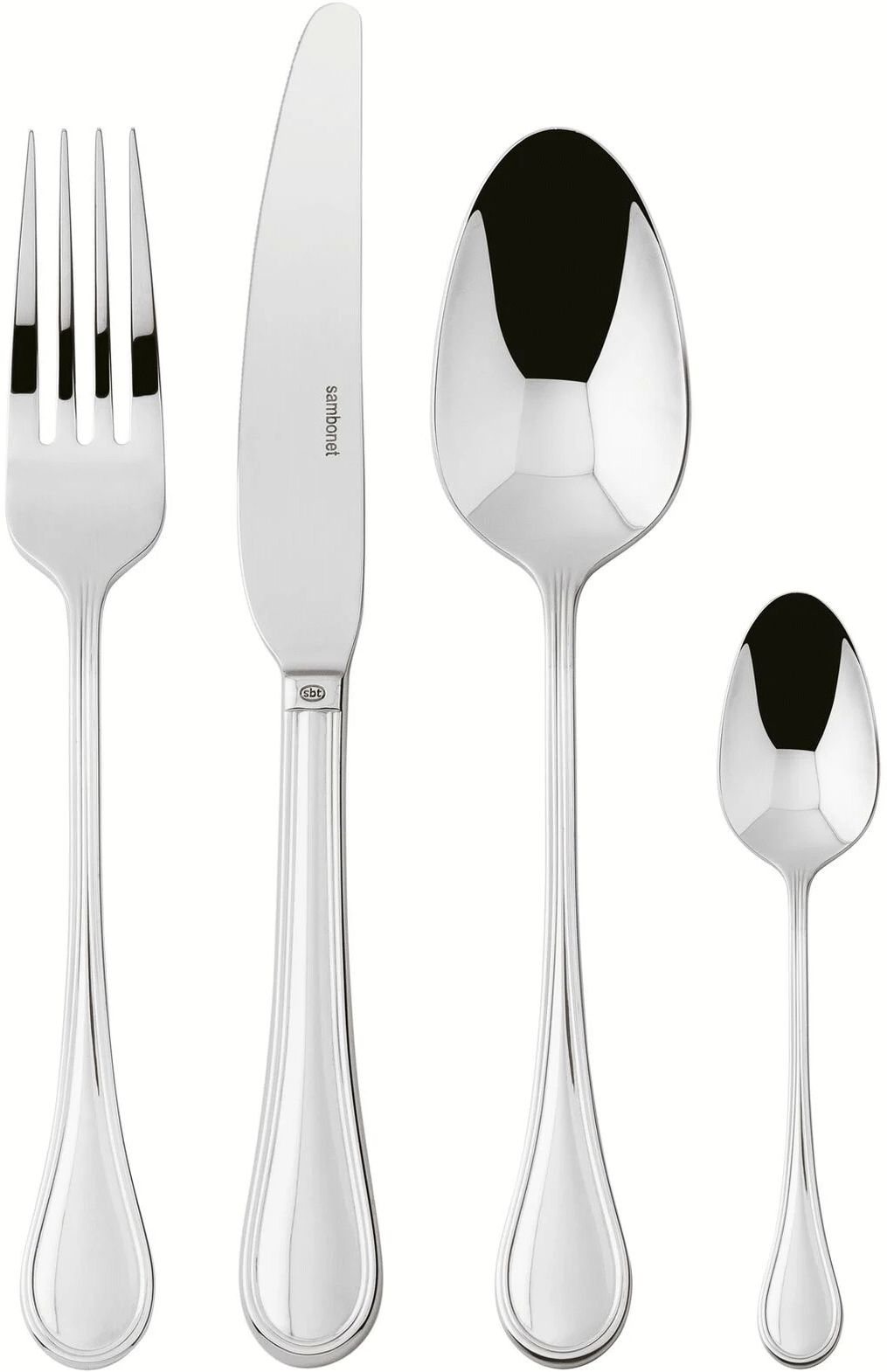 Mit dem Sambonet Royal Besteckset erhältst du ein 24-teiliges Ensemble, das klassische Eleganz mit moderner Funktionalität vereint und deine Tafel zu jedem Anlass stilvoll bereichert. Gefertigt aus hochwertigem 18/10 Edelstahl, verbindet dieses Set solide handwerkliche Qualität mit einer zeitlosen Ästhetik, die sich harmonisch in jedes moderne Zuhause einfügt. Jedes Besteckteil überzeugt durch eine Stärke von 3 mm und vermittelt dir ein angenehmes Gefühl von Solidität und Langlebigkeit in der Hand.Das Design der Royal-Kollektion zeichnet sich durch raffinierte Linien und eine moderne Interpretation klassischer Formen aus. Das charakteristische doppelte Linienrelief und der originale Sambonet-Stempel auf den Messergriffen unterstreichen die Fertigungsexpertise und das Erbe der Marke. Die Spiegelfinish hebt die hohe Qualität des Edelstahls hervor und verleiht dem Besteckset einen exklusiven Ausdruck. Die Oberfläche wird mit Zusatzstoffen und mechanischen Bürsten aus verschiedenen Materialien poliert, wodurch der Stahl geglättet wird und einen hohen Glanz erhält. Die Reflexionen bereichern jedes einzelne Stück und fügen deiner Tischdekoration eine zusätzliche Dimension an Eleganz hinzu.