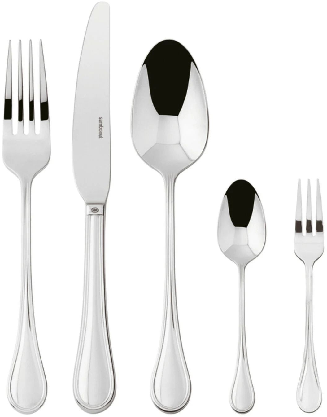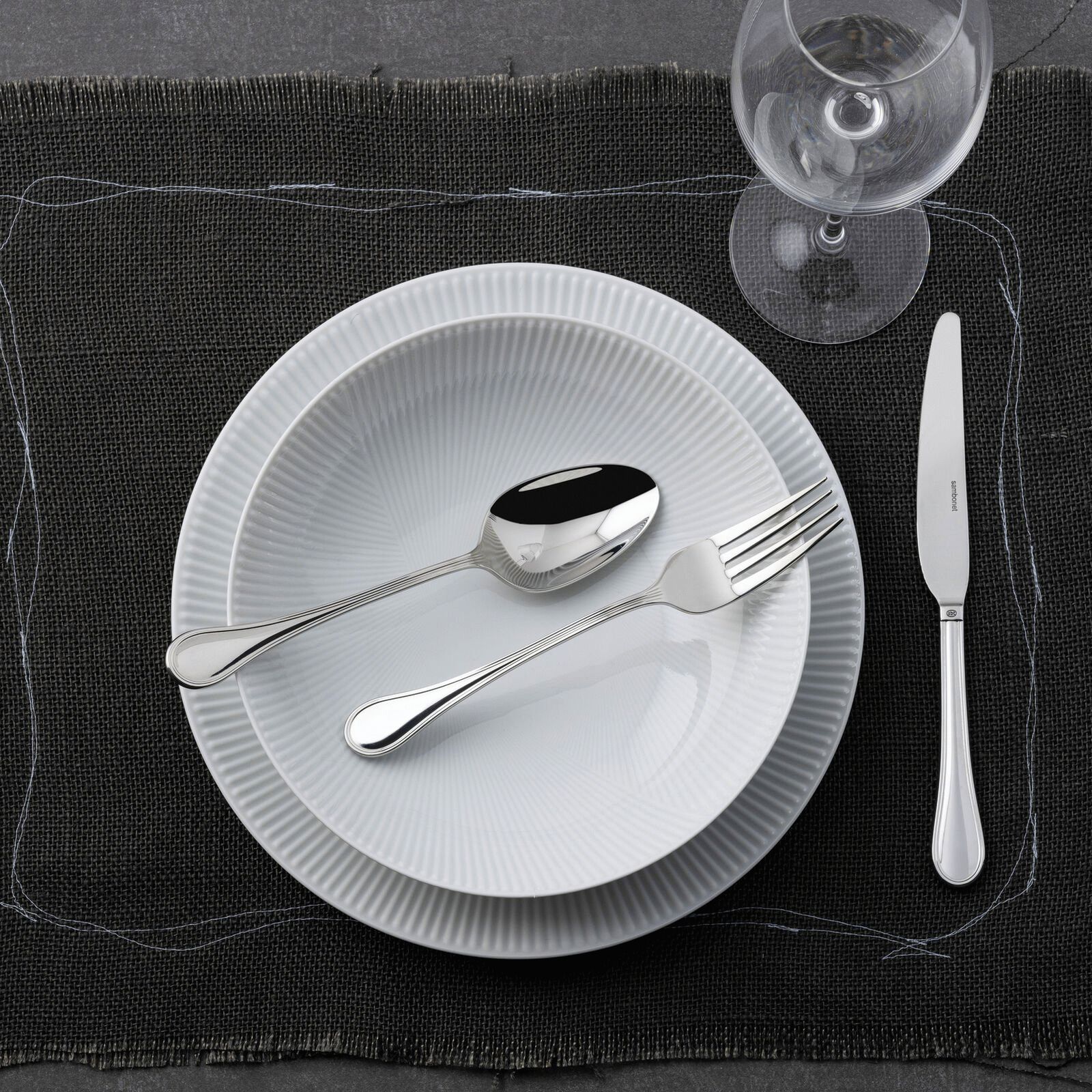 Das Set besteht aus: 12 Esslöffeln, 12 Menügabeln, 12 Menümessern, 12 Dessertgabeln und 12 Teelöffeln.