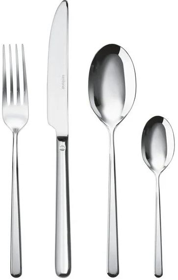 Mit diesem 24-teiligen Besteckset von Sambonet holst du dir italienische Designtradition in ihrer reinsten Form direkt auf deinen Tisch. Die Linear-Serie verkörpert stringente Geometrie gepaart mit funktionaler Eleganz – jedes einzelne Teil ist aus erstklassigem 18/10 Edelstahl gefertigt und überzeugt durch präzise Formgebung. Klare Linien und perfekt ausbalancierte Proportionen schaffen einen harmonischen Gesamteindruck, der jede Tischdeckung mühelos aufwertet.Das Set bietet dir kompletten Service für 6 Personen und umfasst 6 Tafelmesser, 6 Gabeln, 6 Esslöffel sowie 6 Teelöffel. Jedes Besteckteil liegt angenehm schwer und ausgewogen in deiner Hand – ein Zeichen für solide Handwerkskunst und durchdachtes Design. Besonders die Messer beeindrucken durch ihre Monoblok-Konstruktion: Sie sind aus einem durchgehenden Stahlstück gefertigt, ohne Zwischenräume zwischen Griff und Klinge. Diese nahtlose Verarbeitung vermittelt dir bei jeder Nutzung ein Gefühl von Qualität und Beständigkeit.