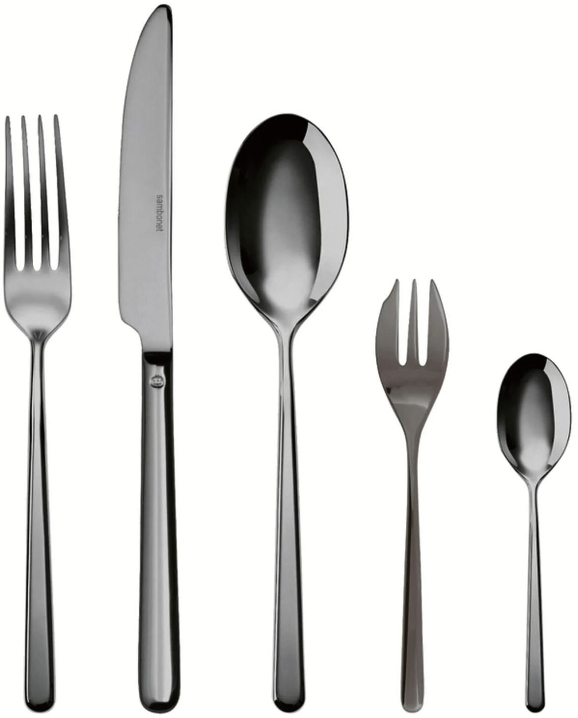 Dieses hochwertige Besteckset bringt moderne Eleganz und skandinavisches Designbewusstsein direkt auf deinen Esstisch. Mit seiner markanten schwarzen Oberfläche setzt das 30-teilige Set von Sambonet ein Statement und verleiht jeder Mahlzeit einen Hauch von zeitgenössischer Raffinesse. Ob für den täglichen Gebrauch oder festliche Anlässe – mit diesem Set deckst du mühelos für bis zu sechs Personen und sorgst für ein harmonisches Gesamtbild.Das Besteck besteht aus erstklassigem 18/10 Edelstahl und ist mit einer fortschrittlichen PVD-Beschichtung in Schwarz veredelt. PVD steht für Physical Vapour Deposition, ein Verfahren, bei dem metallische Partikel durch Verdampfung in einer Vakuumkammer aufgetragen werden. Die Beschichtung verschmilzt auf atomarer Ebene mit dem Stahl und verleiht dem Material außergewöhnliche Härte sowie Widerstandsfähigkeit gegen Abrieb und Korrosion. Dadurch behält das Besteck dauerhaft seine tiefschwarze Farbe und ist optimal vor Rost und Oxidation geschützt.