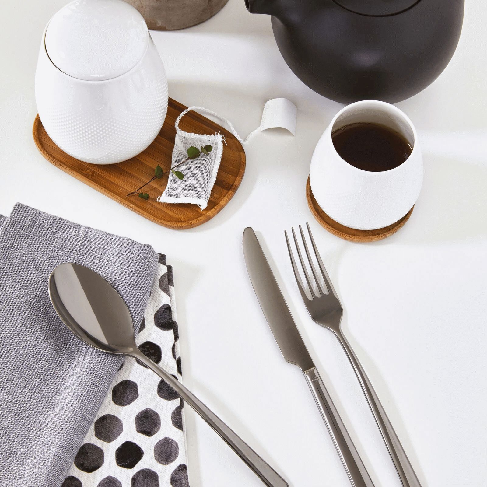 Die elegante Verpackung mit einem speziellen Band für das Finish macht das Set zur idealen Geschenkidee für Hochzeiten, Einzugsfeiern oder andere besondere Anlässe. Die schwarze Oberfläche schafft einen modernen Kontrast zu klassischem Porzellan oder minimalistischer Tischdekoration und passt perfekt zu skandinavischen Einrichtungskonzepten.