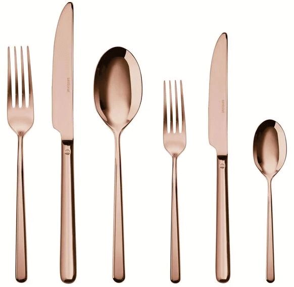 Mit diesem raffinierten Besteckset in warmer Kupferfarbe holst du dir italienische Handwerkskunst und zeitgemäße Eleganz direkt auf deinen Esstisch. Das 36-teilige Set aus der Linear-Kollektion des renommierten italienischen Herstellers Sambonet vereint klassisches Design mit innovativer Oberflächentechnologie und bietet dir eine vollständige Ausstattung für sechs Personen. Jedes Teil besticht durch präzise geometrische Formgebung, bei der jedes Detail sorgfältig durchdacht wurde, um Funktionalität und Ästhetik in perfekter Harmonie zu vereinen.Das Besteck besteht aus hochwertigem 18/10 Edelstahl und erhält seine unverwechselbare kupferfarbene Optik durch eine fortschrittliche PVD-Beschichtung. PVD steht für Physical Vapour Deposition – ein Verfahren, bei dem metallische Partikel in einer Vakuumkammer aufgedampft und auf atomarer Ebene mit dem Edelstahl verschweißt werden. Diese Technologie verleiht deinem Besteck außergewöhnliche Härte und Widerstandsfähigkeit gegen Abnutzung und Korrosion. Das Ergebnis ist ein Produkt, das seine schöne Oberfläche dauerhaft bewahrt und über Jahre hinweg rostfrei und oxidationsbeständig bleibt.