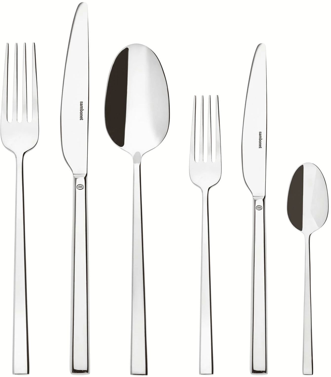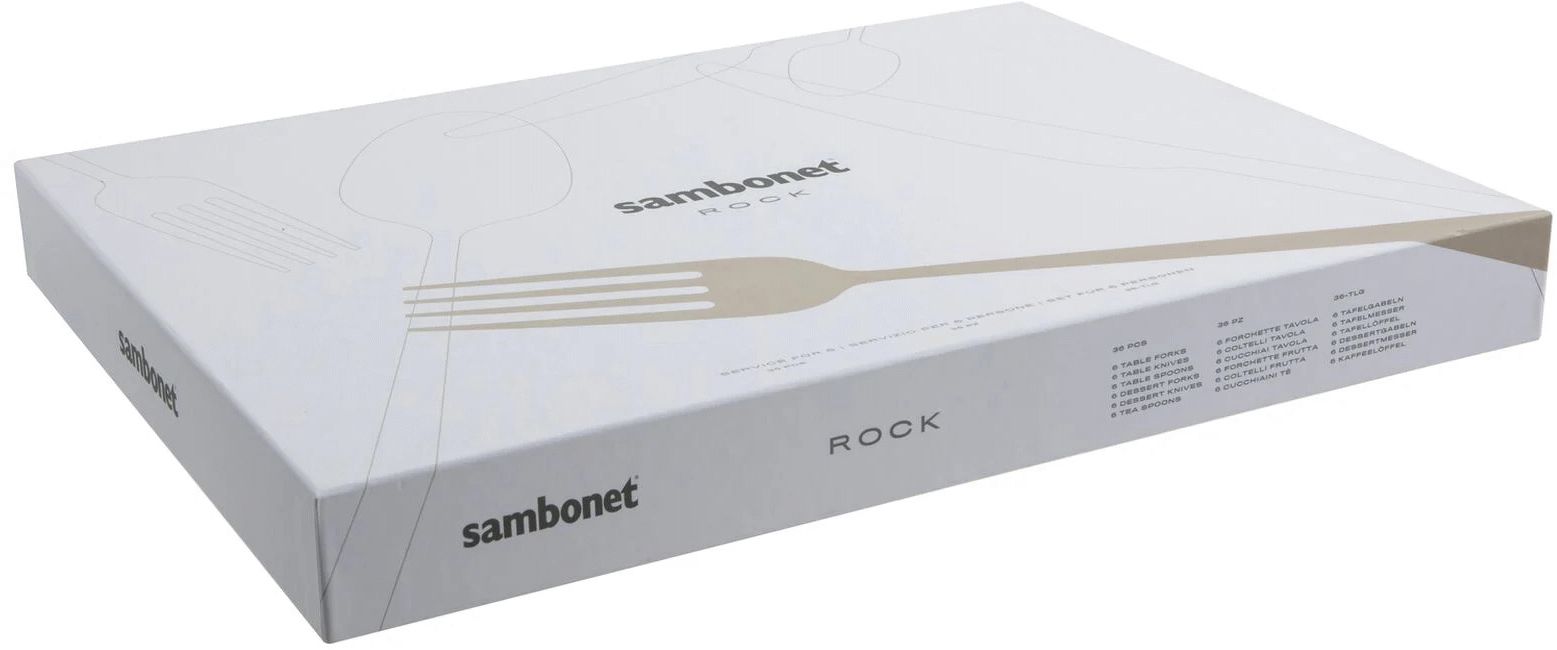 Mit dem Sambonet Rock Besteckset holst du dir ein Statement-Piece für deine Tafel, das moderne Ästhetik mit robuster Funktionalität vereint. Dieses 36-teilige Set aus hochwertigem Edelstahl bringt markante, quadratische Linien und eine kraftvolle Präsenz auf deinen Tisch – perfekt für alle, die Wert auf individuellen Stil und skandinavische Designklarheit legen. Ob alltägliche Mahlzeiten oder festliche Anlässe, mit diesem Set bist du bestens ausgestattet.Das komplette Service für 6 Personen umfasst jeweils 6 Gabeln, 6 Esslöffel, 6 Tafelmesser, 6 Dessertgabeln, 6 Dessertmesser und 6 Teelöffel. Jedes einzelne Teil ist aus langlebigem 18/10 Edelstahl gefertigt, einem Material, das für seine außergewöhnliche Haltbarkeit und zeitlose Schönheit bekannt ist. Die dicke, solide Konstruktion verleiht dem Besteck nicht nur eine angenehme Haptik, sondern auch eine beeindruckende Stabilität, die du bei jedem Gebrauch spürst.
