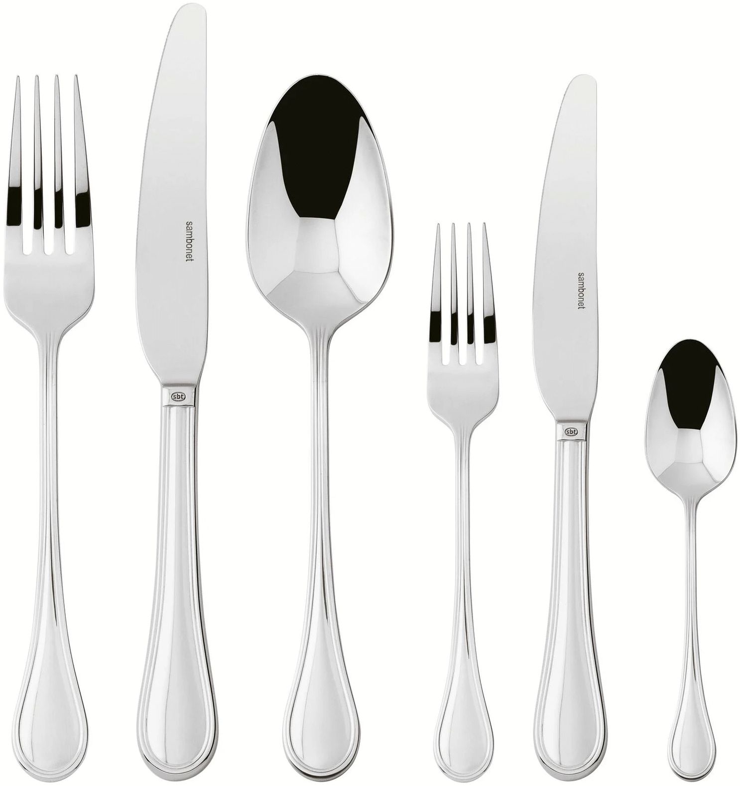 Mit diesem hochwertigen Besteckset von Sambonet holst du dir italienische Handwerkskunst und zeitlose Eleganz direkt auf deinen Tisch. Das 36-teilige Royal-Set vereint klassisches Design mit moderner Funktionalität und eignet sich perfekt für den täglichen Gebrauch ebenso wie für besondere Anlässe. Gefertigt aus erstklassigem rostfreiem Edelstahl 18/10, bietet dir dieses solide Besteck eine raffinierte Lösung für jede Tischgestaltung.Die Besonderheit der Royal-Kollektion liegt in ihrer außergewöhnlichen Verarbeitung. Mit einer Materialstärke von 3 mm und dem charakteristischen Sambonet-Stempel repräsentiert jedes Besteckteil italienische Handwerkstradition und Fertigungsexpertise auf Weltniveau. Die spiegelglänzende Oberfläche hebt die hohe Qualität des rostfreien Stahls hervor und betont die eleganten Formen des Designs auf eindrucksvolle Weise. Durch Polieren mit Zusatzstoffen und mechanischen Bürsten aus verschiedenen Materialien wird der Stahl geglättet und erhält seinen beeindruckenden Hochglanz. Die Reflexionen verleihen jedem einzelnen Besteckteil eine besondere Exklusivität und bereichern deine Tischkultur.