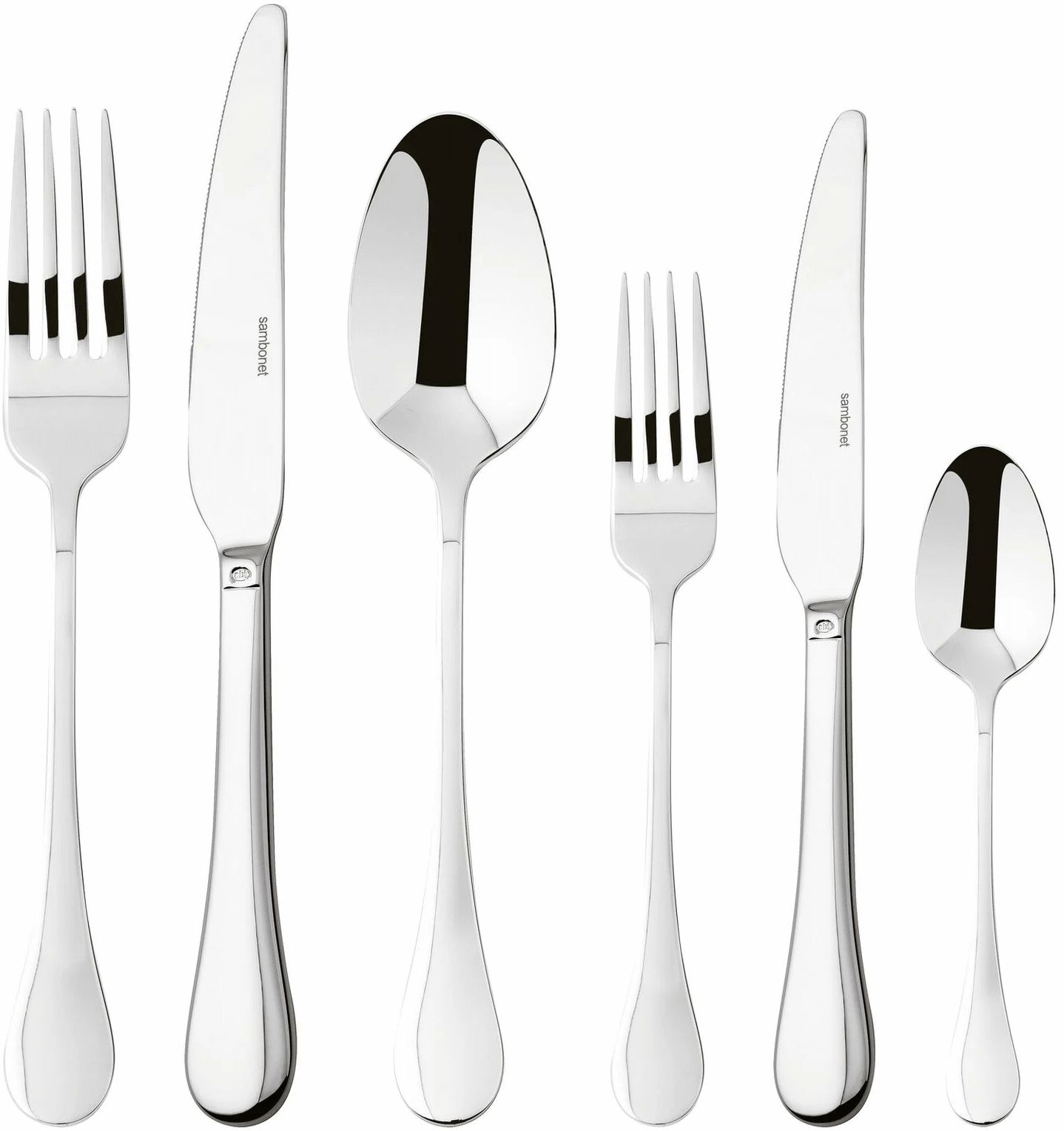 • Set beinhaltet: 6 Esslöffel, 6 Essgabeln, 6 Essmesser, 6 Dessertgabeln, 6 Dessertmesser, 6 Teelöffel