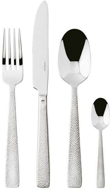 Mit dem Sambonet Siena Besteckset holst du dir eine exklusive Dimension der Tischkultur nach Hause, die jedes Essen zu einem besonderen Erlebnis macht. Die charakteristische Reliefoberfläche dieses 24-teiligen Sets aus hochwertigem Edelstahl verbindet Funktionalität mit einem markanten Design, das Blicke auf sich zieht und Gespräche am Tisch anregt. Inspiriert von internationalen Jetset-Destinationen und Traumurlaubsorten spiegelt sich die elegante Textur wider, die den gesamten Besteckkörper bedeckt. Die beidseitig geprägte Oberfläche entsteht bereits während des Gießprozesses, was Details garantiert, die Abnutzung und der Zeit standhalten. Das spiegelglänzende Finish hebt die hohe Qualität des Edelstahls hervor und betont die Formen des Designs, während die Reflexionen die Besteckteile bereichern und sie noch exklusiver wirken lassen. Die Oberflächen werden mit Zusatzstoffen und mechanischen Bürsten aus verschiedenen Materialien poliert, die den Edelstahl glätten und ihm einen hohen Glanz verleihen. Das Ergebnis ist ein Besteck, das nicht nur als Werkzeug dient, sondern als Tischdekoration im Mittelpunkt steht – perfekt für dich, wenn du die Bühne bereiten möchtest, bevor der Teller auf den Tisch kommt. Die Messer im Set sind als Monoblok-Konstruktion gefertigt, das bedeutet, sie bestehen aus einem einzigen Stück Stahl. Im Gegensatz zu Messern mit hohlem Griff, die aus zwei Teilen bestehen, gibt es keine Zwischenräume zwischen Griff und Klinge. Das verleiht dir ein angenehmes Gefühl von Solidität, wenn du das Messer in der Hand hältst. Sambonet Siena wird aus 18/10 Edelstahl höchster Qualität hergestellt und ist spülmaschinengeeignet. Die Messerklingen bestehen aus martensitischem Edelstahl 420 und sind gehärtet, was langanhaltende Schnittkanten sichert. Dieses Set für 6 Personen bietet dir alles, was du für eine raffinierte Tischdeckung benötigst.Produktspezifikationen: