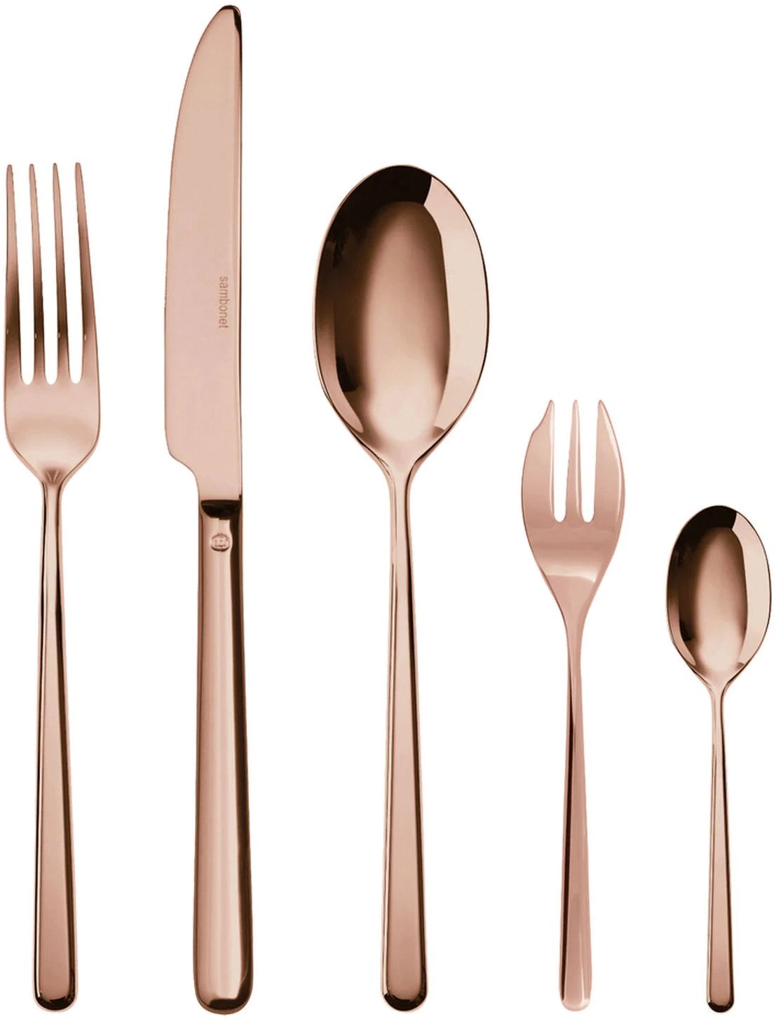 Die Linear-Serie besticht durch ihre präzise Geometrie und klaren Linien, die jedem Gedeck eine moderne, zugleich zeitlose Eleganz verleihen. Die charakteristische Kupferfarbe durchbricht die Monotonie des Alltags und harmoniert wunderbar sowohl mit klassischen als auch mit zeitgenössischen Tischdekorationen. Ob festliches Dinner oder entspanntes Familienessen – mit diesem Besteck setzt du immer stilvolle Akzente.