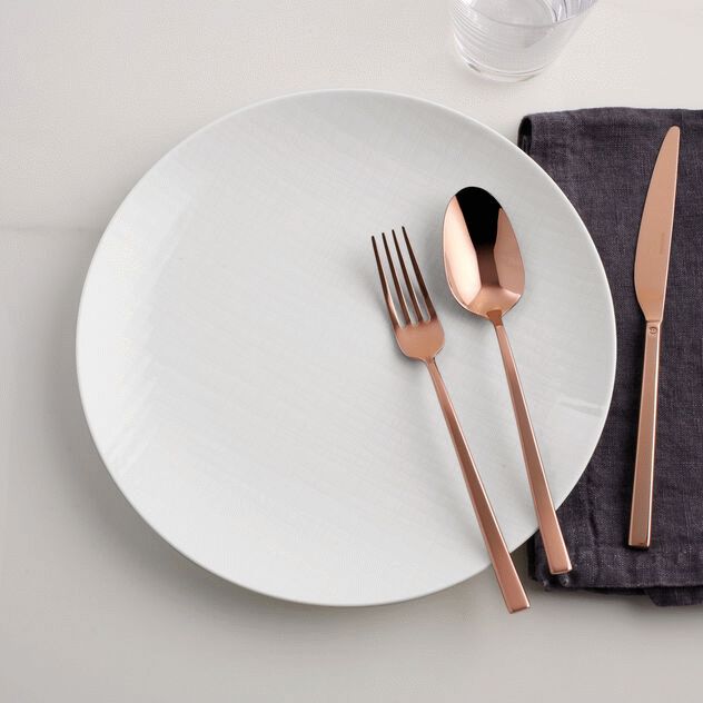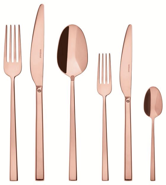 Das Design ist zeitgemäß und auffallend, mit einer entspannten Eleganz, die perfekt zu moderner Tischgestaltung passt. Die quadratischen Linien und die markante Stärke schaffen eine einzigartige visuelle Identität, die deine Gäste beeindrucken wird. Für die optimale Pflege empfiehlt sich die tägliche Reinigung von Hand oder in der Spülmaschine mit mildem Spülmittel. Vermeide Scheuerschwämme und abrasive Reinigungsmittel. Bei hartnäckigen Flecken kannst du das Besteck in warmem Wasser mit etwas Essig einweichen. Trockne es anschließend immer gründlich mit einem weichen Tuch ab, um das schöne Kupferfinish zu bewahren.