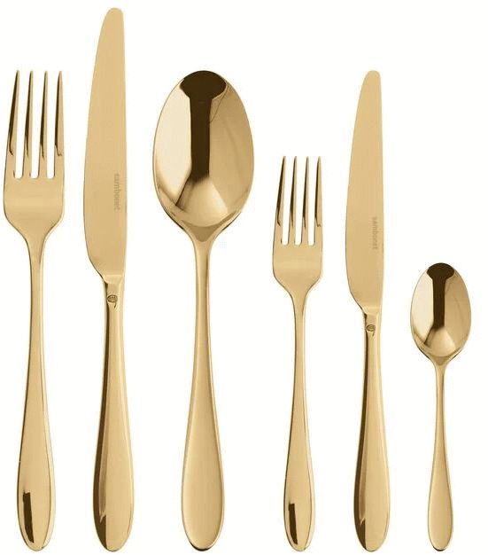 Dieses exquisite Besteckset vereint skandinavische Designphilosophie mit italienischer Handwerkskunst und bringt luxuriöse Eleganz auf deinen Esstisch. Die sanft geschwungenen Linien und das ausgewogene Design machen jede Mahlzeit zu einem besonderen Erlebnis – ob im Alltag oder bei festlichen Anlässen. Mit seiner goldenen Oberfläche setzt das Set stilvolle Akzente und verleiht deiner Tafel eine raffinierte, moderne Ästhetik.Gefertigt aus hochwertigem 18/10 Edelstahl mit einer Materialstärke von 4 mm, überzeugt das Besteck durch außergewöhnliche Langlebigkeit und eine angenehm ausgewogene Haptik. Die goldene Veredelung wird durch modernste PVD-Technologie (Physical Vapour Deposition) erreicht – ein innovatives Beschichtungsverfahren, bei dem metallische Partikel in einer Vakuumkammer verdampft und auf atomarer Ebene mit dem Stahl verschmolzen werden. Dadurch entsteht eine extrem harte, verschleiß- und korrosionsbeständige Oberfläche, die Rostbildung und Oxidation zuverlässig verhindert.