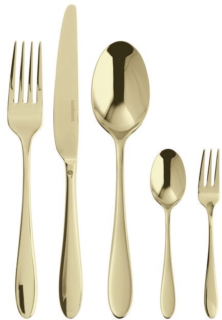 Mit dem Sambonet Velvet Besteckset in Champagne holst du dir ein Stück moderne Eleganz und zeitlose Funktionalität direkt auf deinen Tisch. Dieses 30-teilige Set vereint geschmeidiges skandinavisches Design mit höchster Verarbeitungsqualität und einer raffinierten champagnerfarbenen Oberfläche, die jedem Anlass – ob entspanntes Familienessen oder festliche Tafel – eine besondere Note verleiht. Die sanft geschwungenen Linien und das ausgewogene Gewicht machen jedes Teil zu einem Vergnügen in der Hand.Gefertigt aus erstklassigem 18/10 Edelstahl mit einer Materialstärke von 4 mm, bietet dir das Velvet-Besteck nicht nur angenehme Haptik, sondern auch außergewöhnliche Langlebigkeit. Die charakteristische Champagnerfarbe entsteht durch eine hochmoderne PVD-Beschichtung (Physical Vapour Deposition), bei der Metallpartikel in einer Vakuumkammer verdampft und auf atomarer Ebene mit dem Edelstahl verschweißt werden. Diese Technik verleiht dem Material eine außerordentliche Härte und Widerstandsfähigkeit gegen Abrieb, Korrosion und Oxidation. Die verwendeten Materialien wie Titan und Zirkonium sind absolut ungiftig und so sicher, dass die PVD-Technologie sogar im biomedizinischen Bereich für Skalpelle und chirurgische Instrumente zum Einsatz kommt.