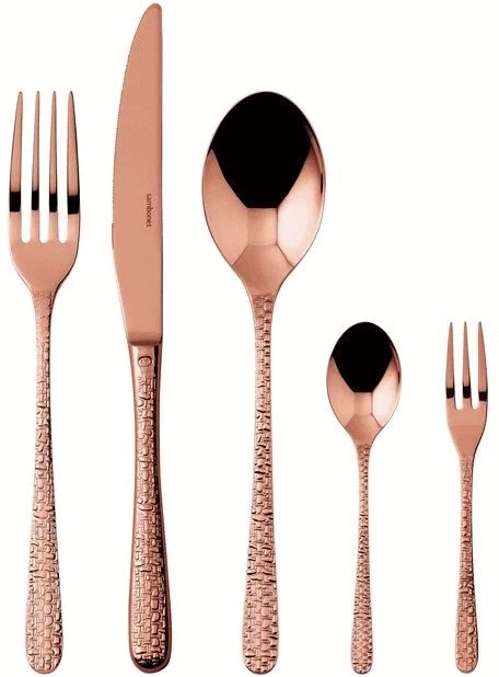 Jedes Besteckteil wird aus hochwertigem 18/10 Edelstahl gefertigt und mit einer fortschrittlichen PVD-Beschichtung veredelt, die dem Set seine wunderschöne Kupferfarbe verleiht. Bei der Physical Vapour Deposition werden Metallpartikel durch Verdampfung in einer Vakuumkammer aufgetragen, wodurch die Beschichtung auf atomarer Ebene mit dem Stahl verschmilzt. Das Ergebnis ist ein Material mit erhöhter Härte und außergewöhnlicher Widerstandsfähigkeit gegen Abnutzung und Korrosion, sodass dein Besteck auch nach vielen Jahren intensiver Nutzung sein attraktives Finish behält.