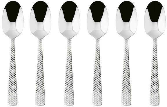 Dieses exklusive Set aus sechs Espressolöffeln vereint italienische Handwerkskunst mit zeitgemäßem Luxus und bringt eine außergewöhnliche Eleganz an deinen Kaffeetisch. Jeder Löffel ist aus hochwertigem 18/10 Edelstahl gefertigt und trägt eine einzigartige Textur, die sich deutlich von herkömmlichem Besteck abhebt. Die Cortina-Serie lässt sich von internationalen Jet-Set-Destinationen und Traumferienorten inspirieren – der Name erinnert an gemütliche Winterpullover und bringt den Charme handgefertigter Objekte direkt auf deinen Tisch.Das charakteristische Relief ist beidseitig gestaltet und wird bereits während des Gussvorgangs in das Besteck eingearbeitet. Diese aufwendige Produktionsmethode garantiert Details, die äußerst widerstandsfähig gegenüber Abnutzung und dem Zahn der Zeit sind. Jeder Espressolöffel erhält dadurch einen exklusiven Charakter, der ihn weit über ein rein funktionales Utensil hinaushebt. Das spiegelglatte Finish unterstreicht die hohe Qualität des Edelstahls und betont die raffinierten Formen des Designs. Die Oberflächen werden mit Zusatzstoffen und mechanischen Bürsten aus verschiedenen Materialien poliert, die den Stahl glätten und ihm einen hohen Glanz verleihen. Die wunderschönen Reflexionen bereichern die Objekte und machen sie noch exklusiver – perfekt für alle, die ihre Tischdekoration mit dem Besteck beginnen statt mit dem Teller.