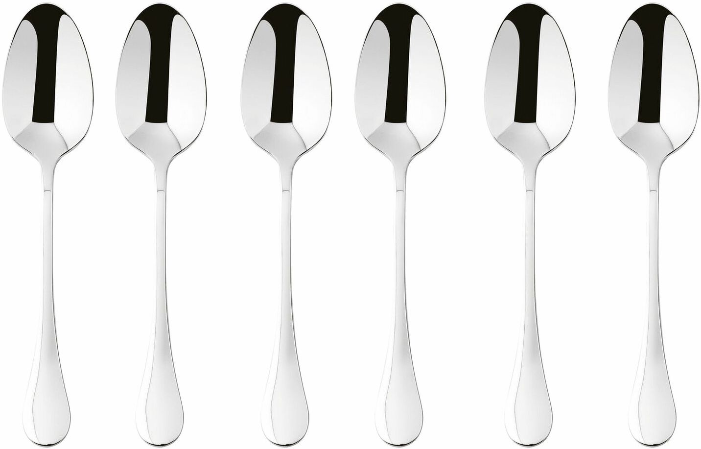 Mit diesem exquisiten Set aus sechs Espressolöffeln der Bloom-Serie von Sambonet verleihst du deinem Kaffeegenuss eine besonders edle Note. Jeder Löffel ist aus hochwertigem Edelstahl gefertigt und besticht durch seine spiegelglänzende Oberfläche, die das Material in seiner natürlichen Schönheit zur Geltung bringt und jedem Stück einen exklusiven Charakter verleiht. Die glänzende Politur entsteht durch sorgfältige Bearbeitung mit Zusatzstoffen und mechanischen Bürsten aus verschiedenen Materialien, die den Stahl glätten und ihm seinen beeindruckenden Glanz verleihen.Die Bloom-Serie zeichnet sich durch ihre weiche, elegante Formgebung aus, die deiner Tischdekoration eine Leichtigkeit und romantische Atmosphäre schenkt. Die schlanken Linien und die harmonische Gestaltung machen diese Espressolöffel zur perfekten Wahl, wenn du eine stimmungsvolle Kaffeepräsentation gestalten möchtest. Die Spiegelreflexionen bereichern das Design und verwandeln jeden Löffel in ein ästhetisch ansprechendes Element auf deinem Tisch. Das robuste Edelstahlmaterial garantiert Langlebigkeit und Beständigkeit, während die glänzende Oberfläche pflegeleicht bleibt. Die Löffel liegen angenehm in der Hand und fühlen sich solide an, was sie sowohl für den täglichen Gebrauch als auch für besondere Anlässe ideal macht.