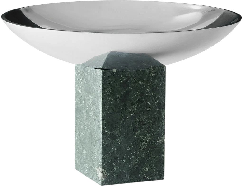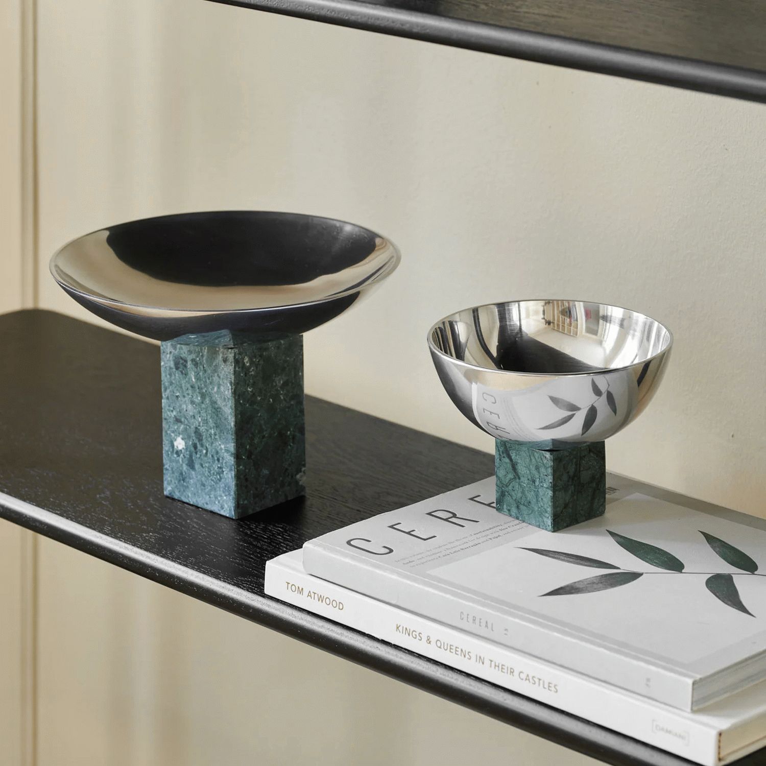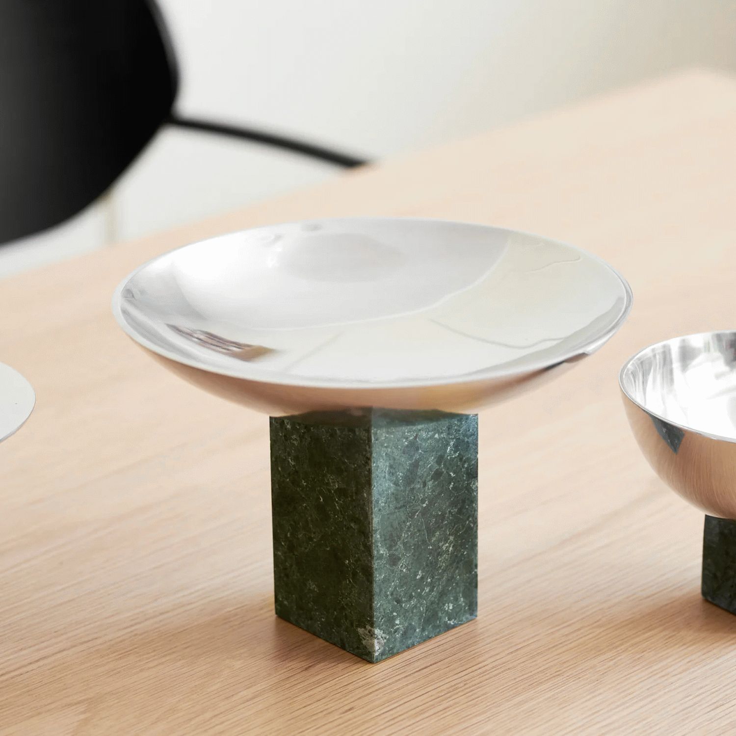 Die Kombination aus poliertem Aluminium und rohem Marmor schafft einen spannenden Materialdialog, der perfekt in die skandinavische Designtradition passt. Du kannst die Schüssel als eigenständiges Statement-Piece verwenden oder mit anderen Elementen der Sapoto-Kollektion kombinieren, um ein kohärentes und raffiniertes Gesamtbild zu schaffen.