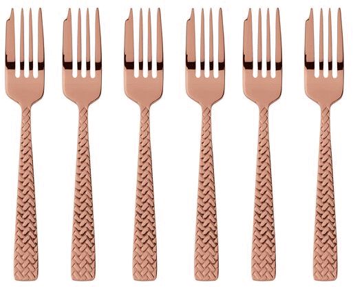 Gefertigt aus hochwertigem 18/10 Edelstahl, erhalten die Gabeln ihre wunderschöne kupferfarbene Oberfläche durch eine PVD-Beschichtung (Physical Vapour Deposition). Bei diesem Verfahren werden metallische Partikel durch Verdampfung in einer Vakuumkammer aufgebracht, wobei die Beschichtung auf atomarer Ebene mit dem Edelstahl verschweißt wird. Das Ergebnis ist ein Material mit erhöhter Härte und verbesserter Beständigkeit gegen Reibung und Korrosion, das die Bildung von Rost oder Oxiden verhindert. Die Technologie nutzt ungiftige Materialien wie Titan und Zirkonium, die sogar für biomedizinische Anwendungen geeignet sind – ein Beleg für höchste Qualität und Nachhaltigkeit.