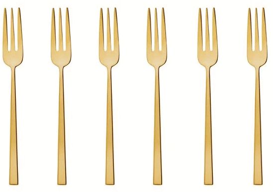 Die Kuchengabeln sind spülmaschinenfest, jedoch empfiehlt es sich, zur Erhaltung der schönen Goldfinish die Herstellerhinweise zu beachten: Verwende stets ein mildes, flüssiges Spülmittel in maximaler Verdünnung und trockne das Besteck nach dem Waschen gründlich mit einem weichen Tuch ab. Vermeide Scheuerschwämme, abrasive Pulver und Stahlbürsten, da diese die PVD-Schicht beschädigen können. Bei hartnäckigen Flecken kannst du das Besteck in warmem Wasser mit einem Glas Essig einweichen.