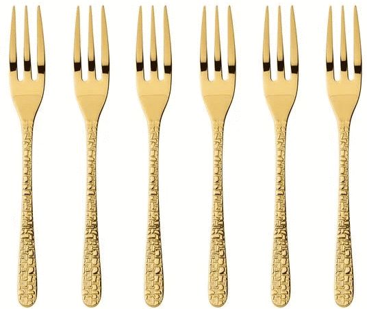 • Set mit 6 Kuchengabeln in eleganter Goldfarbe