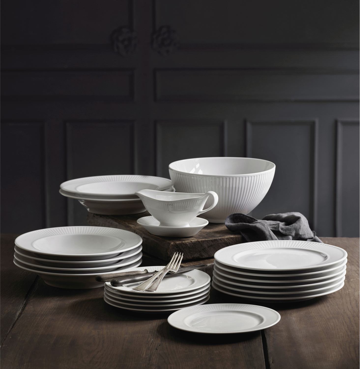 Das weiße Porzellan hebt die feinen Details der Plissierung hervor und unterstreicht den reinen, diskreten Ausdruck der Serie. Genau diese Kombination aus subtiler Dekoration und funktionaler Einfachheit hat die Plissé-Serie weltberühmt gemacht als Inbegriff der besonderen französischen Elegance, die niemals aufdringlich oder übertrieben wirkt.