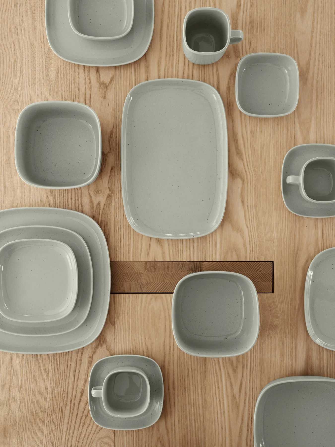 Die Herstellung aus hochwertigem Steinzeug und das Brennen bei 1200°C garantieren nicht nur außergewöhnliche Haltbarkeit, sondern auch die charakteristische Oberfläche, die jede Schüssel zu einem einzigartigen Stück macht. Die glänzende Glasur schützt nicht nur die Oberfläche, sondern verstärkt auch die wunderschöne Mirage Gray Nuance, die sowohl mit neutralen als auch farbenfrohen Tischdekorationen harmoniert.