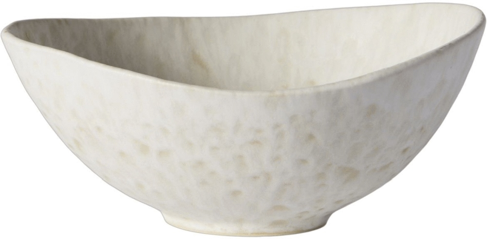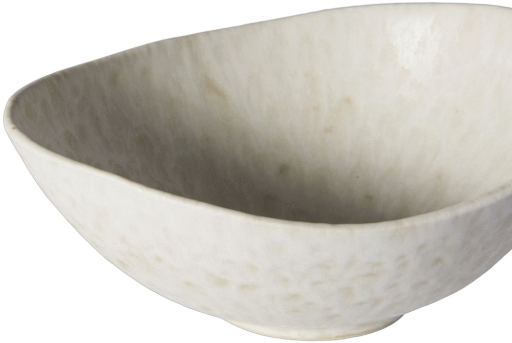 Die cremefarbene Keramikschale beeindruckt durch ihre organische und rustikale Formgebung, bei der abgerundete Kanten dem Design authentischen Charakter verleihen. Besonders bemerkenswert ist die reaktive Glasur, die jedem Stück eine einzigartige Marmorierung schenkt. Dadurch wird deine Schale zu einem individuellen Kunstwerk mit ganz eigener Persönlichkeit und Ausstrahlung – kein Exemplar gleicht dem anderen.