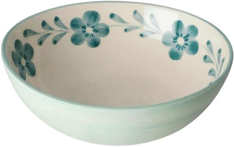 Diese vielseitige Schale mit 21 cm Durchmesser entsteht in den Händen talentierter Handwerker in Portugal, wo jedes Stück durch den traditionellen Malprozess seinen ganz eigenen Charakter erhält. Die eleganten Blumenranken, die sich kunstvoll um die Seiten der Schale winden, machen jedes Exemplar zu einem kleinen Kunstwerk, das Persönlichkeit und Wärme in deine Küche bringt.