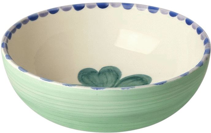 Diese zauberhafte handbemalte Schale von RICE vereint portugiesische Handwerkstradition mit skandinavischem Design und bringt authentische Wärme in dein Zuhause. Die sanfte grüne Farbe und die kompakte Größe mit 13,4 cm Durchmesser machen sie zum perfekten Begleiter für alltägliche Mahlzeiten und besondere Anlässe gleichermaßen.Gefertigt aus hochwertiger Keramik wird jede Schale von geschickten Handwerkern in Portugal individuell bemalt. Dadurch erhältst du ein wahrhaft einzigartiges Stück mit eigenen kleinen Variationen und Details, die der Schale Persönlichkeit und Authentizität verleihen. Das handgefertigte Finish ist nicht nur ästhetisch ansprechend, sondern auch ein Zeugnis für die Sorgfalt und Hingabe, die in die Herstellung fließt.