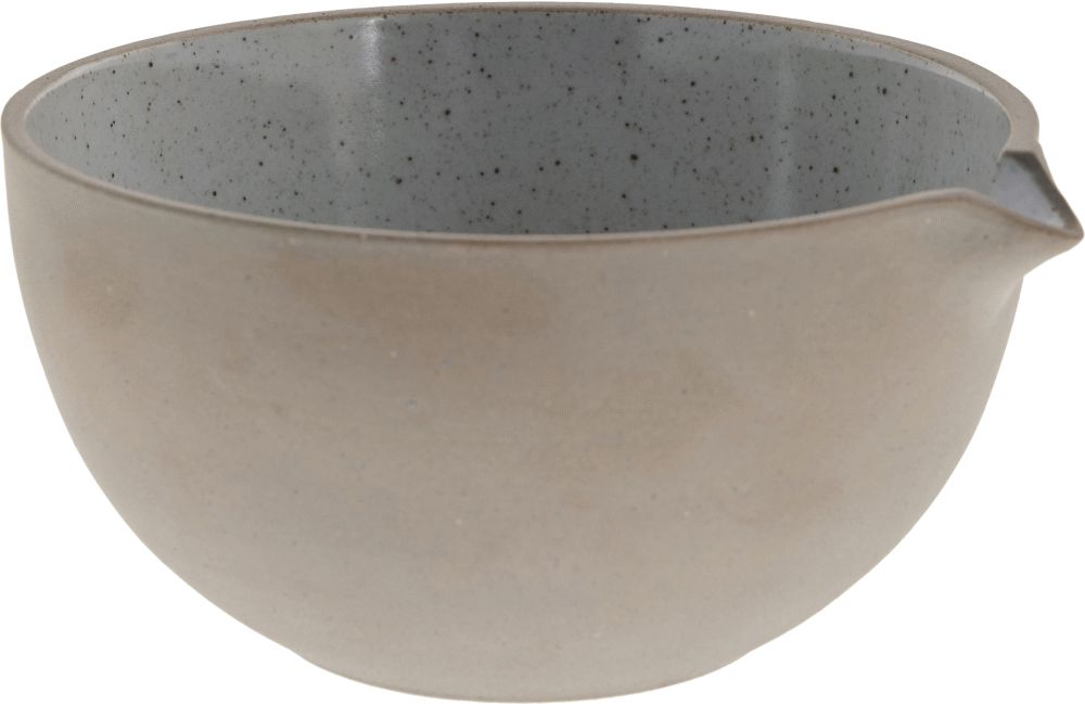 Das raffinierte Design zeigt sich in der matten Außenoberfläche, die eine angenehme Textur schafft, während die glasierte Innenfläche mit feinen gesprenkelten Details einen rustikalen, handgefertigten Charakter verleiht. Diese durchdachte Designentscheidung gibt der Schale eine einzigartige Persönlichkeit, die perfekt zur skandinavischen Designtradition passt.