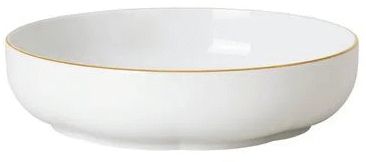 Die runde Schale mit einem Durchmesser von 20,9 cm und einem Fassungsvermögen von 1,2 Litern eignet sich hervorragend zum Servieren von Salaten, Desserts oder als ansprechender Teil deiner Tischkomposition. Die weiße Porzellanoberfläche wird von einem feinen Goldrand akzentuiert, der einen Hauch von Luxus verleiht, ohne das Gesamtbild zu dominieren. Diese Balance zwischen Schlichtheit und Eleganz macht die Schale zu einem vielseitigen Element, das sowohl zu formellen als auch zu entspannten Tischdekorationen passt.