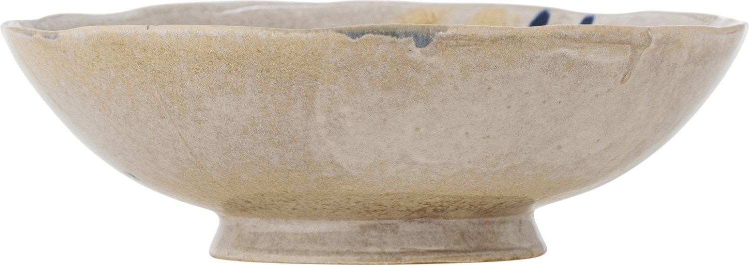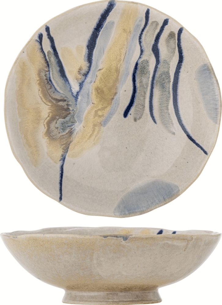 Mit der Imogen Schale von Bloomingville holst du dir ein funktionales Kunstwerk in dein Zuhause, das deinen Esstisch oder deine Küche mit skandinavischem Charme bereichert. Diese großzügige Schale mit einem Durchmesser von 24 cm ist aus robustem Steinzeug gefertigt – einem Material, das für seine Langlebigkeit und sein zeitloses Erscheinungsbild geschätzt wird. Ob du Salate anrichtest, frisches Obst präsentierst oder einfach ein dekoratives Highlight setzen möchtest, diese Schale bietet dir vielseitige Einsatzmöglichkeiten für den Alltag und besondere Anlässe.Das besondere Merkmal der Imogen Schale ist ihre reaktive Glasur, die jeder Schale einen individuellen Charakter verleiht. Die sanften beigen Grundtöne harmonieren wunderbar mit fließenden blauen Nuancen und warmen braunen Akzenten, die der Oberfläche Tiefe und Lebendigkeit schenken. Dank der speziellen Glasurtechnik entstehen während des Brennvorgangs natürliche Variationen in Muster und Farbintensität – das bedeutet, dass keine zwei Schalen exakt gleich aussehen. So erhältst du ein Unikat mit handwerklicher Qualität, das die Liebe zum Detail und die Kunstfertigkeit skandinavischer Designtradition widerspiegelt.
