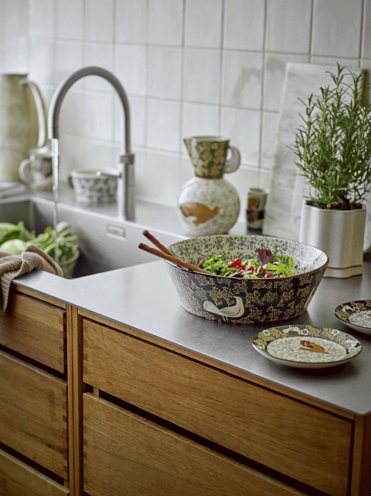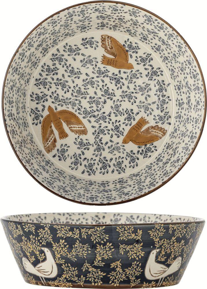 Mit dieser großzügigen Schale von Bloomingville holst du dir ein Stück handwerkliche Kunst direkt auf deinen Tisch. Die Hezha Schale vereint praktische Funktionalität mit künstlerischem Ausdruck und setzt durch ihr handgemaltes Vogelmotiv einen besonderen Akzent in deinem Zuhause. Mit einem Durchmesser von 28 cm bietet sie ausreichend Platz für Salate, frisches Obst oder andere Köstlichkeiten und eignet sich zugleich hervorragend als dekoratives Element in Küche oder Wohnbereich.Das Besondere an dieser Schale ist die liebevolle Handmalerei, die jedes Exemplar zu einem Unikat macht. Keine zwei Schalen gleichen sich vollständig, denn die natürlichen Variationen in Muster und Farbintensität sind ein bewusster Teil des Designs und unterstreichen die handwerkliche Qualität. Die Vogelmotive zieren sowohl die Innen- als auch die Außenseite der Schale und schaffen durch ihre kontrastreichen Details in sanften und tiefen Blautönen einen lebendigen, harmonischen Gesamteindruck.