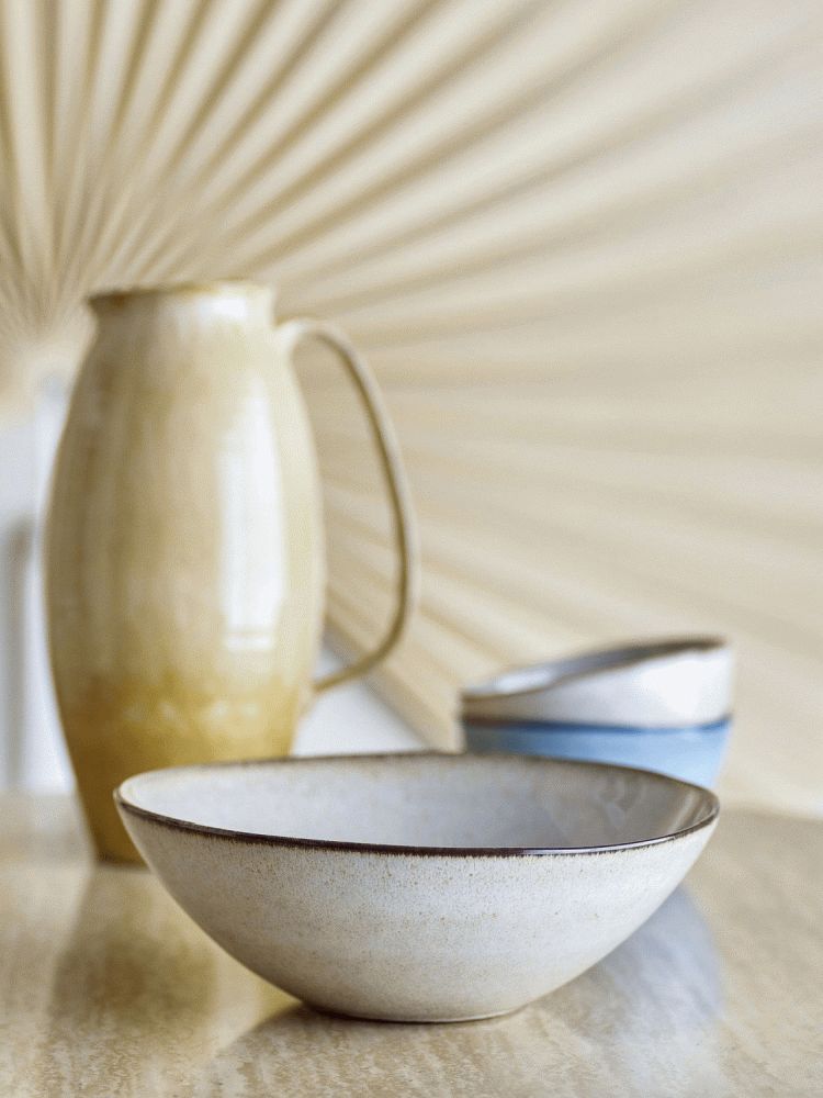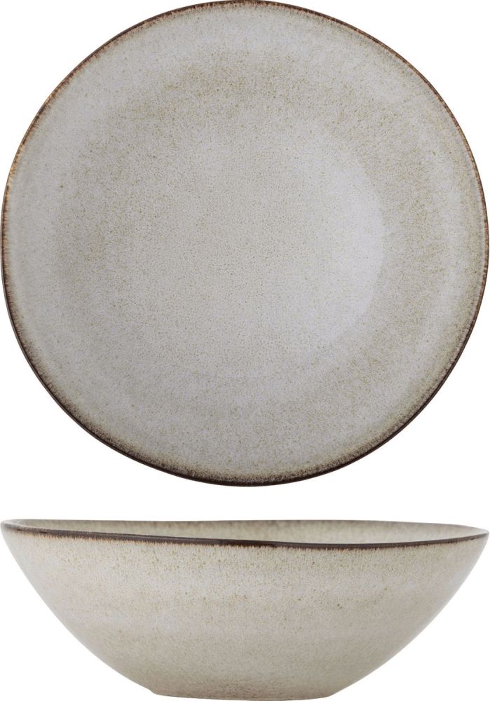 Diese charaktervolle Schale aus hochwertigem Steinzeug verwandelt dein Esszimmer in einen einladenden Treffpunkt, an dem sich Familie und Freunde gerne versammeln. Mit ihrer großzügigen Größe und der zeitlosen Formgebung eignet sie sich hervorragend für Familienmahlzeiten – ob für frische Salate, Nudelgerichte oder das morgendliche Müsli mit Obst und Joghurt.Die Schale wurde aus robustem Steinzeug gefertigt und mit einer reaktiven Glasur versehen, die eine lebendige, organische Oberfläche mit einzigartigen Nuancen erzeugt. Der sanfte Beigeton wird durch dezente Punkte bereichert, die der Schale eine subtile Textur verleihen, während der kontrastierende Rand ein elegantes visuelles Element hinzufügt. Dank dieser besonderen Glasurtechnik erhält jede Schale ihren ganz eigenen Charakter mit leichten Variationen in Muster und Farbintensität – dein Exemplar ist somit ein echtes Unikat.