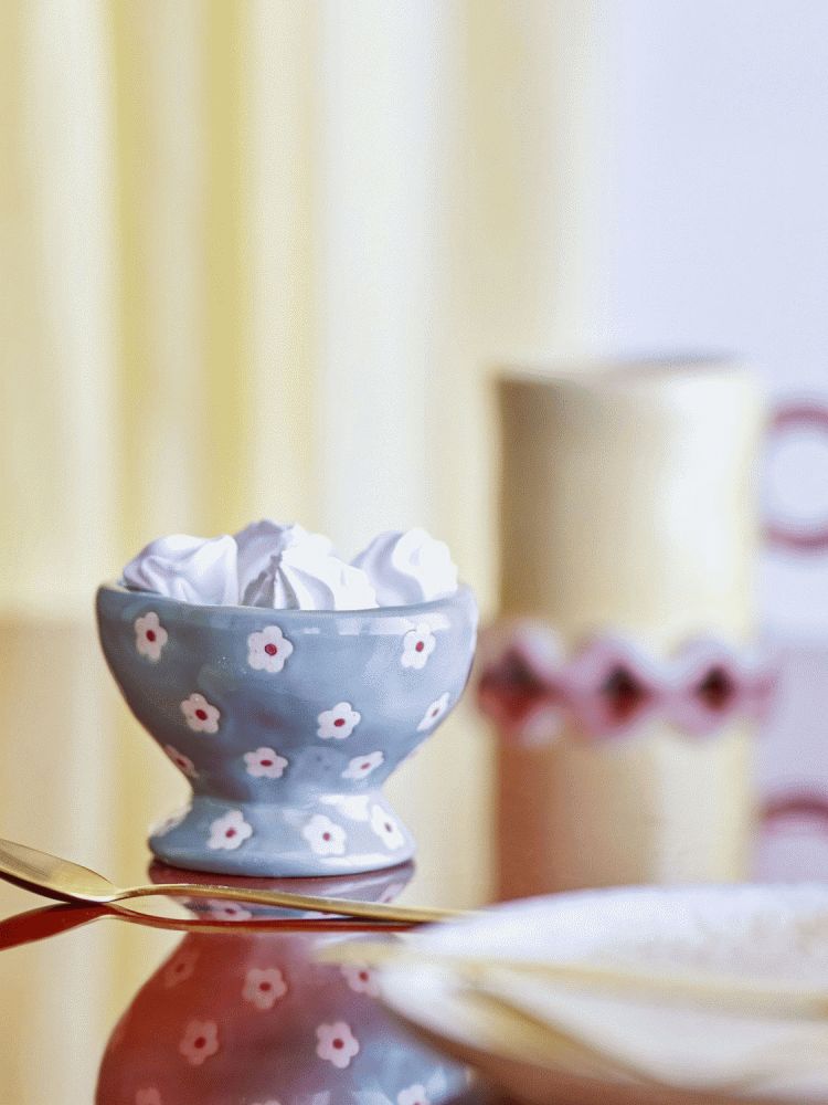 Mit dieser zauberhaften Schale von Bloomingville holst du dir ein Stück handwerkliche Tradition in dein Zuhause, das sich mühelos in jeden modernen Wohnstil einfügt. Die Nini Schale vereint klassisches Handwerk mit zeitgemäßer Formgebung und überzeugt durch ihre kompakte Größe von 9 cm Durchmesser – perfekt für den täglichen Gebrauch oder besondere Anlässe.Gefertigt aus hochwertigem Steinzeug, besticht diese Schale durch ihren sanften blaugrünen Farbton und eine glänzende Oberfläche, die die Farbtiefe wunderbar zur Geltung bringt. Der leicht ausgestellte Fuß und die fein abgerundete Kante verleihen ihr eine zeitlose Silhouette, die sowohl elegant als auch einladend wirkt. Besonders charmant ist die handgemalte Dekoration mit kleinen hellen Blüten und roten Details in der Mitte – ein verspieltes Element, das den Blick einfängt, ohne aufdringlich zu wirken.