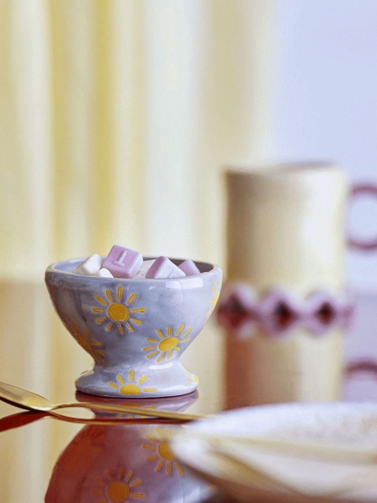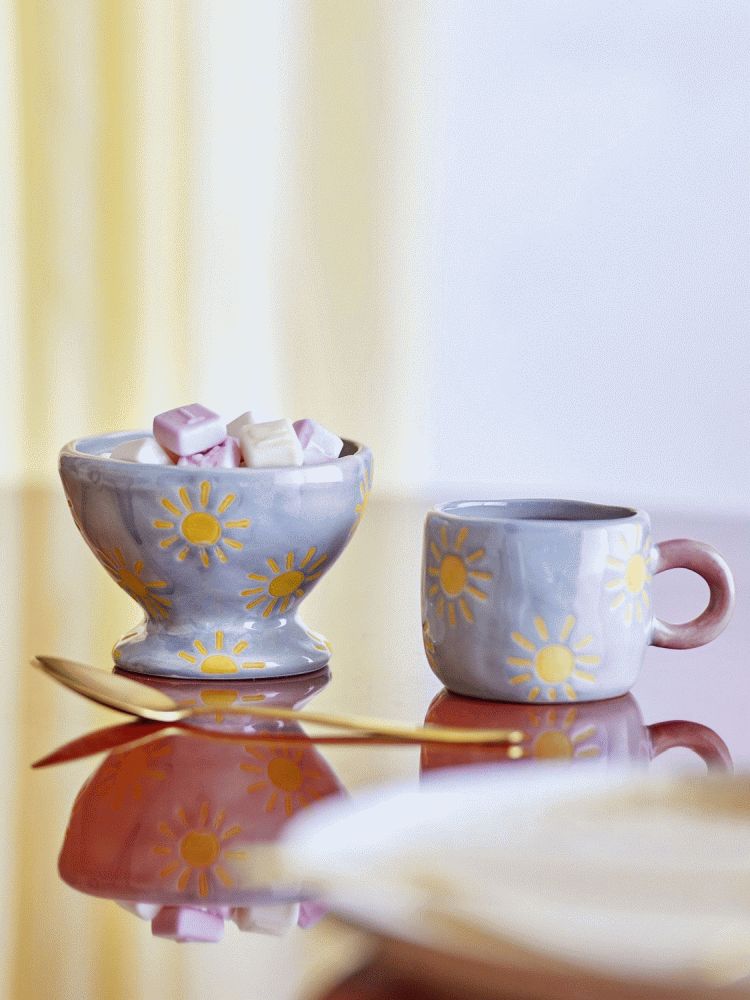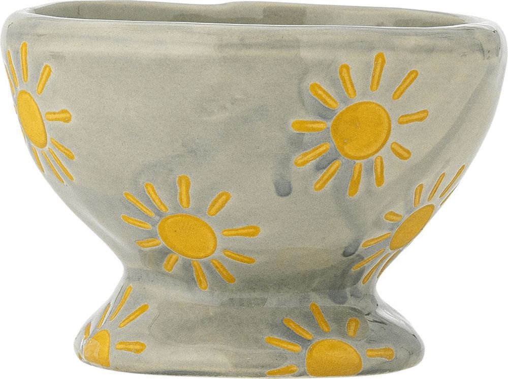 Mit dieser bezaubernden Schale aus Steinzeug holst du dir ein Stück skandinavische Handwerkskunst und fröhliche Farben direkt auf deinen Tisch. Die Nini Schale von Bloomingville vereint funktionales Design mit einer charmanten Ästhetik, die Wärme und Persönlichkeit in dein Zuhause bringt. Jede Schale ist von Hand gefertigt und präsentiert sich in einem sanften Blauton, der eine ruhige und einladende Atmosphäre schafft. Die handgemalten gelben Sonnenmotive verleihen dem Ganzen einen verspielten und hellen Ausdruck, der diese Schale zu einem wunderschönen dekorativen Element auf jedem Tisch oder in jeder Wohnraumgestaltung macht.Das durchdachte Design mit gewölbtem Boden und leicht ungleichmäßigem Rand gibt der Schale einen organischen und authentischen Charakter. Dieser unterstreicht die handwerkliche Arbeit, die hinter dem Produkt steht, denn jede einzelne Schale wird von Hand bemalt. Das bedeutet, dass kleine Variationen in Muster und Farbintensität vorkommen können, was jede Nini Schale einzigartig und besonders macht. Keine zwei Schalen sind völlig identisch, und genau diese Individualität macht sie zu einer begehrten Wahl für alle, die Authentizität und persönlichen Ausdruck in ihrem Zuhause schätzen.