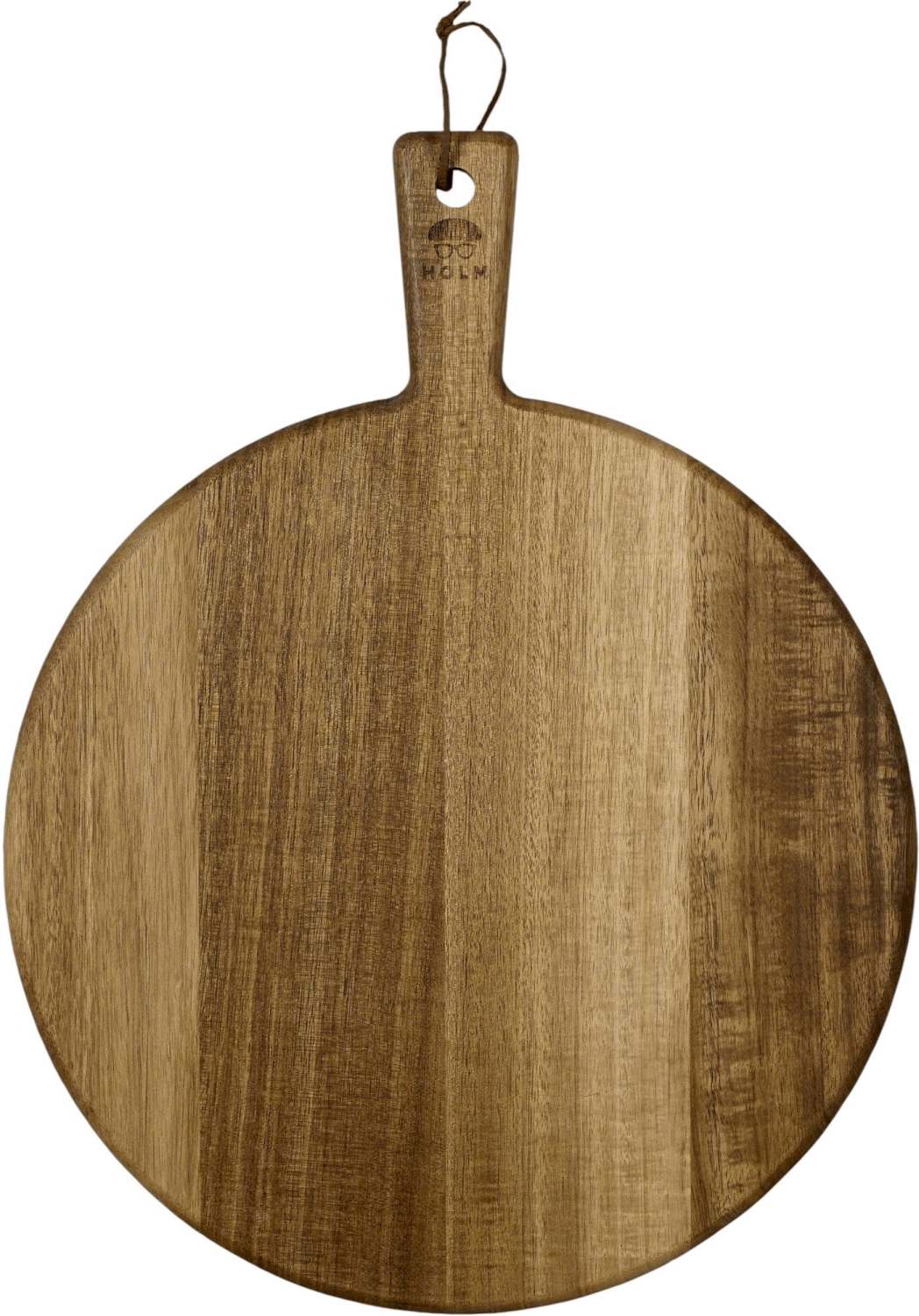 Mit diesem wunderschönen Servierbrett aus Akazienholz verwandelst du jede Mahlzeit in ein besonderes Erlebnis. Das HOLM Servierbrett besticht durch seine runde Form mit einem Durchmesser von 35,6 cm und wird zum einladenden Mittelpunkt deines Esstisches. Die natürliche Maserung des Akazienholzes verleiht jedem Brett einen einzigartigen Charakter und bringt skandinavische Wärme in deine Tischgestaltung.Das durchdachte Design macht dieses Servierbrett zur perfekten Wahl für die Präsentation von Pizza, Antipasti oder einer köstlichen Auswahl an Aufschnitt und Käse, wenn du Familie und Freunde zu gemütlichen Mahlzeiten einlädst. Die solide Konstruktion gewährleistet optimale Stabilität bei der Präsentation deiner kulinarischen Kreationen, während die glatte Oberfläche sowohl praktisch als auch ästhetisch ansprechend ist.