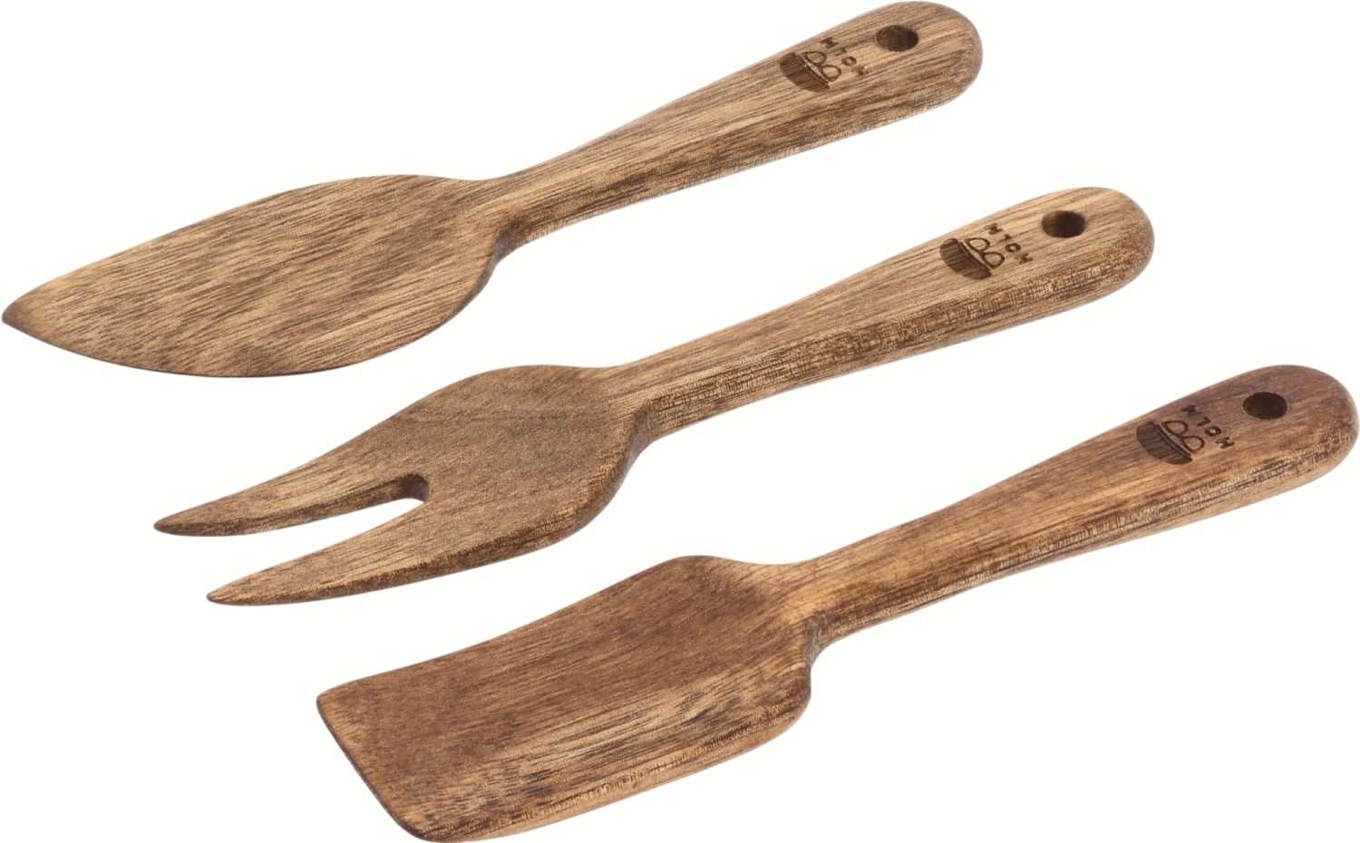 Mit diesem hochwertigen HOLM Käseset aus Akazienholz holst du dir die natürliche Eleganz direkt an deinen Käsetisch. Das wunderschöne dreiteilige Set aus FSC®-zertifiziertem Akazienholz verleiht jeder Anrichtung einen Hauch skandinavischer Charme. Das natürliche Farbspiel des Akazienholzes macht jedes einzelne Set zu einem Unikat und schafft eine warme, einladende Stimmung bei Tisch.Mit einer Gesamtlänge von 14 cm liegt jedes Teil dieses Käsesets perfekt in der Hand und bietet dir optimale Kontrolle und Komfort während der Benutzung. Das Set umfasst alle wesentlichen Werkzeuge für ein vollendetes Käseerlebnis: ein scharfes Messer für präzise Schnitte, eine Gabel zum Servieren und eine Palette, die ideal ist, um sowohl weiche Frischkäse als auch feste Käsesorten zu handhaben.