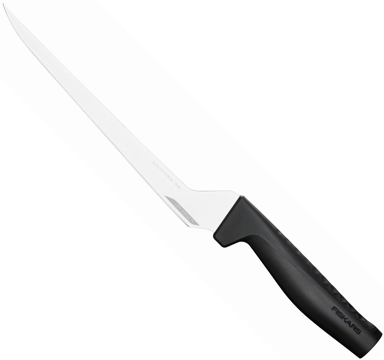 Mit diesem hochwertigen Filetiermesser von Fiskars holst du dir japanische Stahlqualität und skandinavische Designtradition direkt in deine Küche. Das 32 cm lange Messer mit einer beeindruckenden Klingenlänge von 217 mm wurde speziell entwickelt, um Fisch und Fleisch mit außergewöhnlicher Präzision zu bearbeiten und macht das Filetieren zu einer einfachen und angenehmen Aufgabe.Die innovative LZR-EDGE™ Technologie hebt dieses Küchenwerkzeug deutlich von herkömmlichen Messern ab. Diese sorgfältig auf die Schneide aufgetragene Technologie sorgt für eine Schärfe, die bis zu viermal länger anhält als bei traditionellen Messern. Das bedeutet weniger Unterbrechungen beim Kochen und eine konstante Schneidpräzision, egal ob du ein einfaches Alltagsgericht oder ein anspruchsvolles Gourmet-Menü zubereitest.