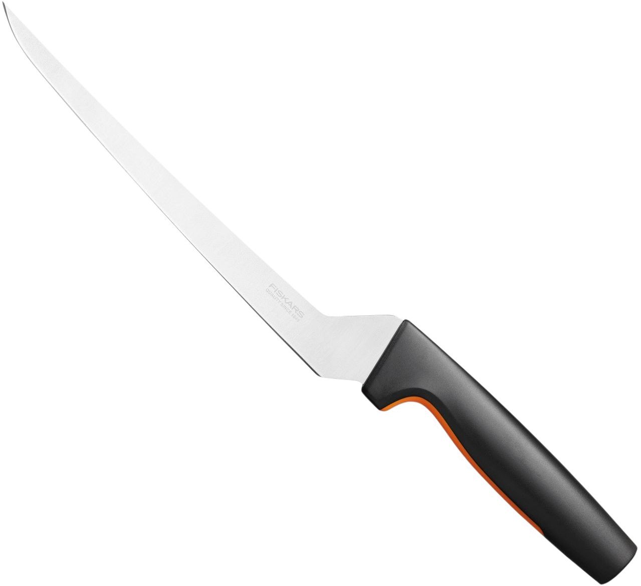 Mit diesem professionellen Filetiermesser von Fiskars bringst du präzise Schnittkunst in dein Küchenrepertoire und verwandelst das Filetieren von Fleisch und Fisch in eine mühelose Aufgabe. Die 21,5 cm lange Klinge aus hochwertigem japanischem Edelstahl überzeugt durch außergewöhnliche Schärfe und Langlebigkeit, selbst bei intensiver Nutzung.Das schmale, flexible Blad folgt mühelos den natürlichen Konturen von Fleisch und Fisch, sodass du perfekte Filets ohne unnötigen Verschnitt erhältst. Diese Flexibilität macht das Messer zum idealen Werkzeug für anspruchsvolle Schneidarbeiten, bei denen Präzision entscheidend ist. Die durchdachte Konstruktion spiegelt skandinavische Designphilosophie wider, die Funktionalität und Ästhetik harmonisch vereint.
