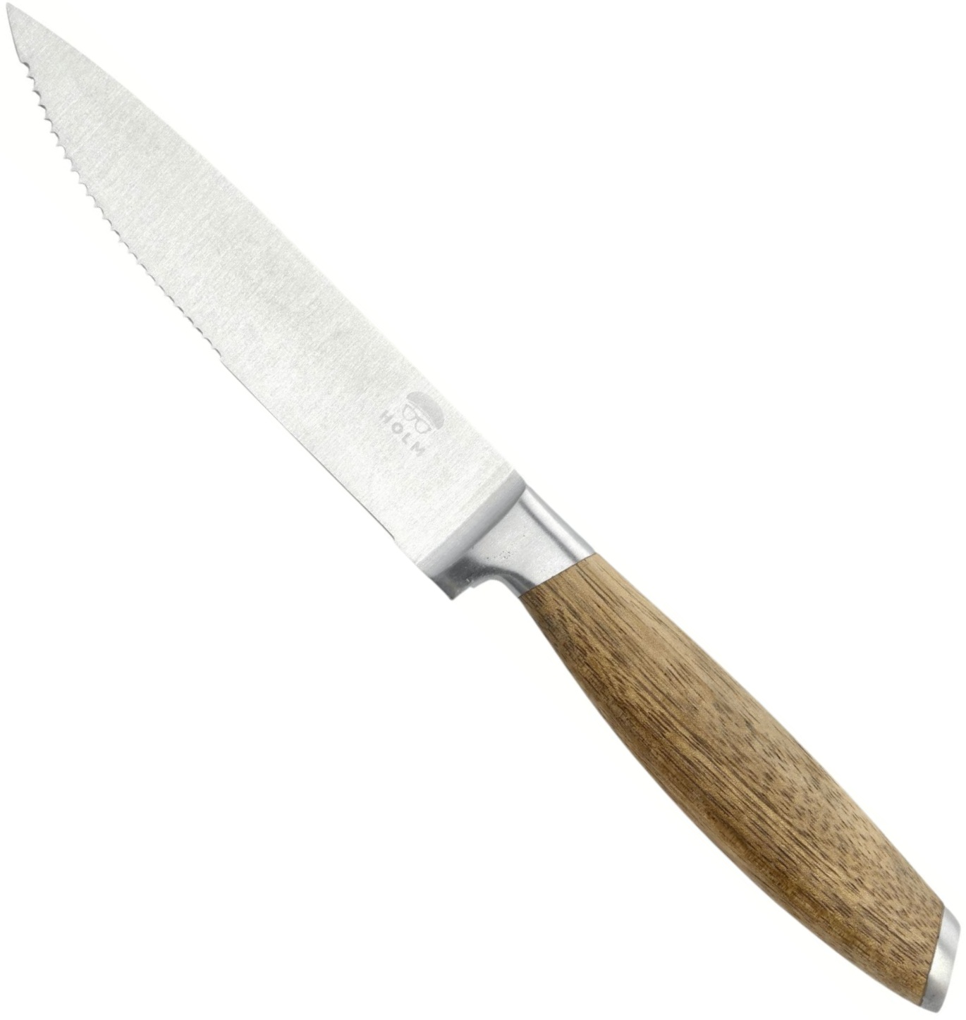 Das HOLM Universalmesser vereint skandinavische Funktionalität mit der natürlichen Schönheit von Akazienholz zu einem Werkzeug, das in jede moderne Küche gehört. Mit seinem eleganten Design und dem gerundeten Akazienholzgriff wird dieses Messer sowohl zu einem praktischen Helfer als auch zu einem ästhetischen Vergnügen beim Arbeiten.Der Griff besteht aus FSC-zertifiziertem Akazienholz, das sich durch seine charakteristischen und wunderschönen Maserungen auszeichnet und jedes Messer zu einem Unikat macht. Die gerundeten Formen liegen natürlich und angenehm in deiner Hand, was optimalen Komfort und Kontrolle während der Nutzung gewährleistet. Die elegante Stahlkappe am Ende des Griffs verleiht einen raffinierten Touch und verlängert gleichzeitig die Lebensdauer des Messers.