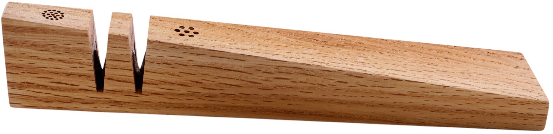 Das hochwertige Eichenholz verleiht dem Messerschärfer nicht nur eine edle Optik, sondern liegt auch angenehm in der Hand. Die Kombination aus natürlichen Materialien und präziser Ingenieurskunst spiegelt die skandinavische Designphilosophie wider, die Schönheit und Funktionalität mühelos vereint.