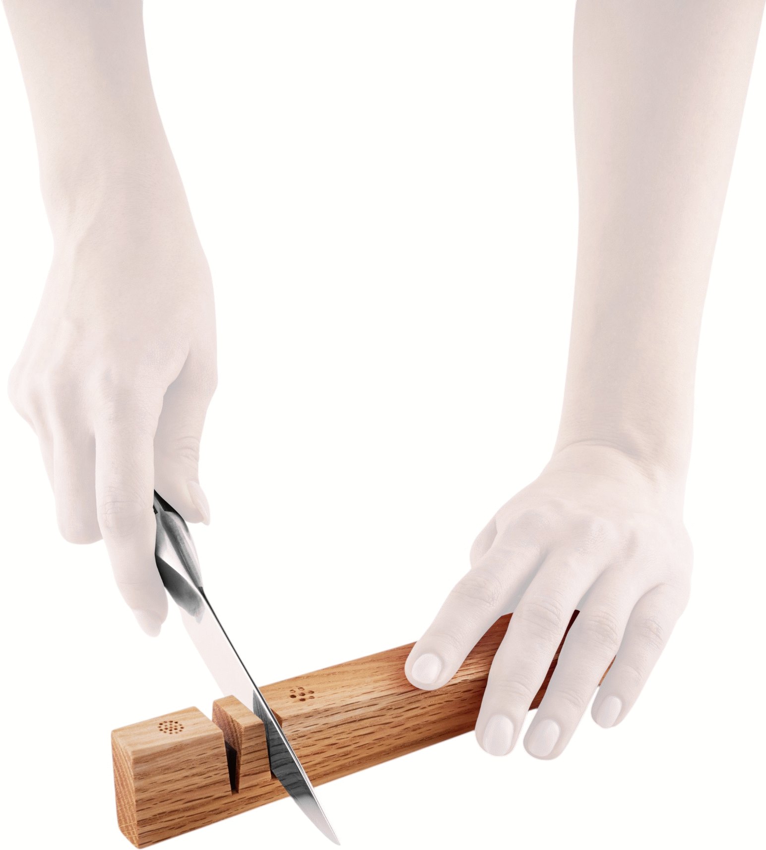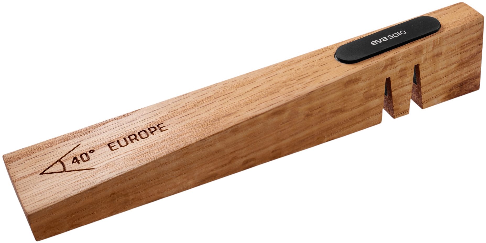 Der kompakte Messerschärfer fügt sich harmonisch in jede Küche ein und ist ein unverzichtbares Werkzeug für alle, die Wert auf perfekt geschärfte Messer legen. Die Kombination aus traditionellem Eichenholz mit modernen Schleifmaterialien verkörpert die charakteristische skandinavische Designphilosophie von Eva Solo.