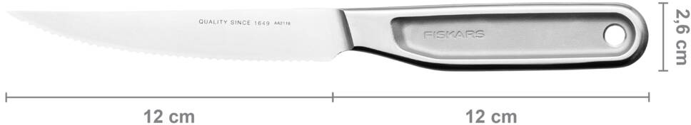 Die Gesamtlänge von 24 cm wurde sorgfältig durchdacht, um eine optimale Balance zu gewährleisten. So liegt das Messer natürlich in deiner Hand und reduziert Ermüdung bei längeren Kochsessions. Mit der All Steel Serie hat Fiskars Küchengeräte geschaffen, die Funktionalität mit Ästhetik vereinen.