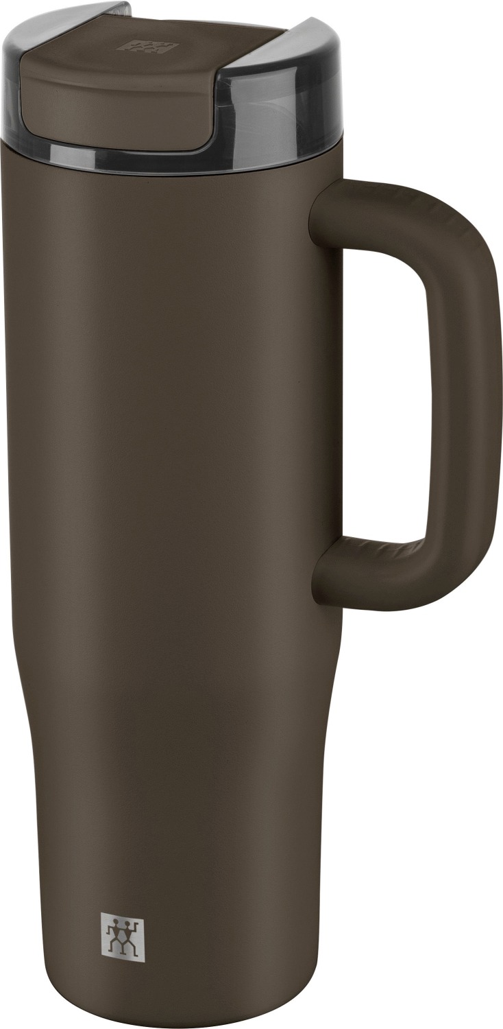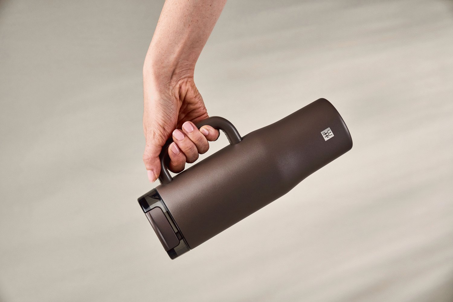 Mit diesem großzügigen Thermobecher aus der ZWILLING THERMO PLUS-Serie holst du dir einen zuverlässigen Begleiter für den gesamten Tag – ob auf dem Weg zur Arbeit, beim Sport im Fitnessstudio oder entspannt zu Hause. Dank der beeindruckenden Kapazität von 900 ml hast du stets ausreichend von deinem Lieblingsgetränk dabei: vom morgendlichen Kaffee bis hin zum erfrischenden Wasser nach dem Training. Der Becher hält kalte Getränke bis zu 12 Stunden kühl und warme Getränke bis zu 14 Stunden warm – möglich macht das die hervorragende Thermoeigenschaft des hochwertigen Edelstahls. So genießt du deine Getränke immer bei der idealen Temperatur, egal wie lange du unterwegs bist.Das durchdachte Design stammt von den italienischen Designern Matteo Thun und Antonio Rodriguez, die Funktionalität mit eleganter Ästhetik in einem schokoladenfarbenen Finish vereint haben. Der Becher bietet dir zwei praktische Trinkvarianten: Du kannst direkt aus dem praktischen Deckel trinken oder den mitgelieferten Strohhalm für ein entspannteres Trinkerlebnis nutzen. Wenn der Strohhalm nicht gebraucht wird, lässt er sich einfach im Inneren des Bechers verstauen – eine clevere Lösung, die dafür sorgt, dass nichts verloren geht.