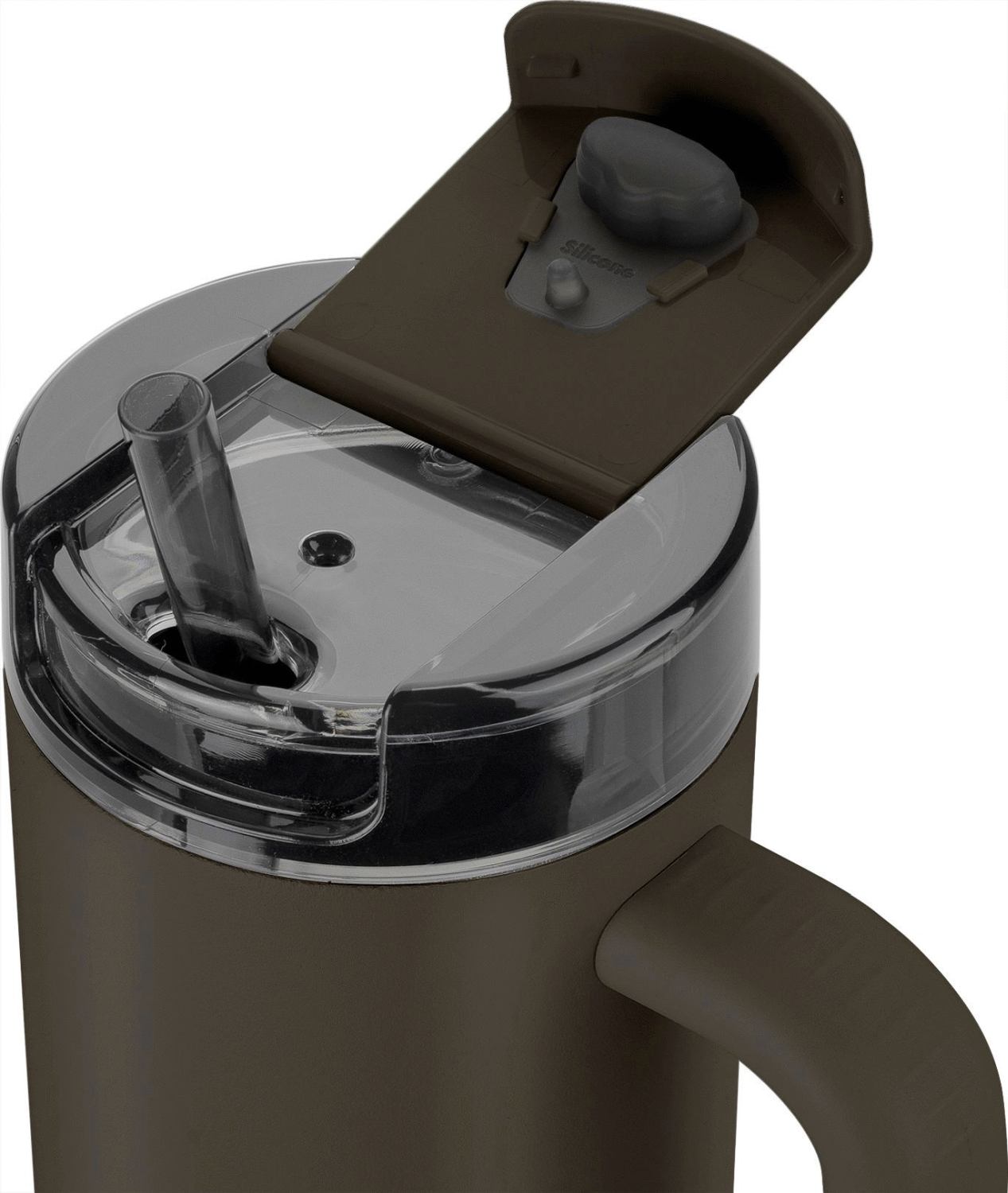 Das durchdachte Design stammt von den italienischen Designern Matteo Thun und Antonio Rodriguez, die Funktionalität mit eleganter Ästhetik in einem schokoladenfarbenen Finish vereint haben. Der Becher bietet dir zwei praktische Trinkvarianten: Du kannst direkt aus dem praktischen Deckel trinken oder den mitgelieferten Strohhalm für ein entspannteres Trinkerlebnis nutzen. Wenn der Strohhalm nicht gebraucht wird, lässt er sich einfach im Inneren des Bechers verstauen – eine clevere Lösung, die dafür sorgt, dass nichts verloren geht.