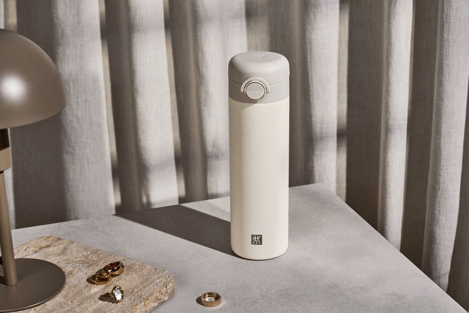 Mit der Zwilling Thermo Plus Thermoflasche in cremefarbenem Design holst du dir einen zuverlässigen Begleiter für deinen aktiven Alltag, der deine Getränke genau in der Temperatur hält, die du brauchst. Egal ob du im Büro sitzt, unterwegs zu einem wichtigen Termin bist oder einen Ausflug planst – diese hochwertige Thermoflasche sorgt dafür, dass dein Kaffee bis zu 7 Stunden lang heiß bleibt und kalte Getränke bis zu 12 Stunden erfrischend kühl bleiben.Die Flasche vereint Funktionalität mit einem zeitlosen Ausdruck und wurde von den renommierten italienischen Designern Matteo Thun und Antonio Rodriguez entworfen. Das cremeweiße Finish verleiht ihr einen eleganten und modernen Look, der sich perfekt an jeden Stil und jede Gelegenheit anpasst. Gefertigt aus hochwertigem rostfreiem Edelstahl, überzeugt sie nicht nur durch ihre Langlebigkeit, sondern auch durch ihre leichte Konstruktion, die den Transport zum Kinderspiel macht.