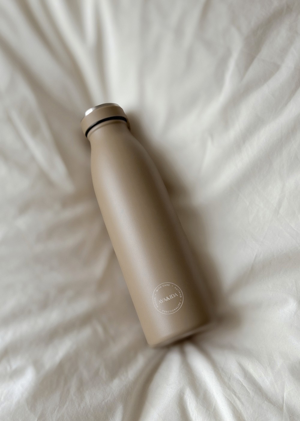 Diese stilvolle Trinkflasche von AYA&IDA in der eleganten Dusty Blue Farbe vereint praktische Funktionalität mit ästhetischem Design, das perfekt zur skandinavischen Designtradition passt. Die 500 ml Thermoflasche wird zu deinem idealen Begleiter im Alltag - ob im Büro, im Fitnessstudio oder unterwegs.Dank ihrer hervorragenden Isoliereigenschaften hält sie deine Getränke bis zu 24 Stunden kalt oder bis zu 12 Stunden warm, sodass du immer die perfekte Temperatur deines Lieblingsgetränks genießen kannst. Die Konstruktion aus lebensmittelechtem Edelstahl höchster Qualität (18/8) garantiert, dass deine Getränke ihren natürlichen Geschmack bewahren, ohne dass Geschmack oder Gerüche übertragen oder absorbiert werden.