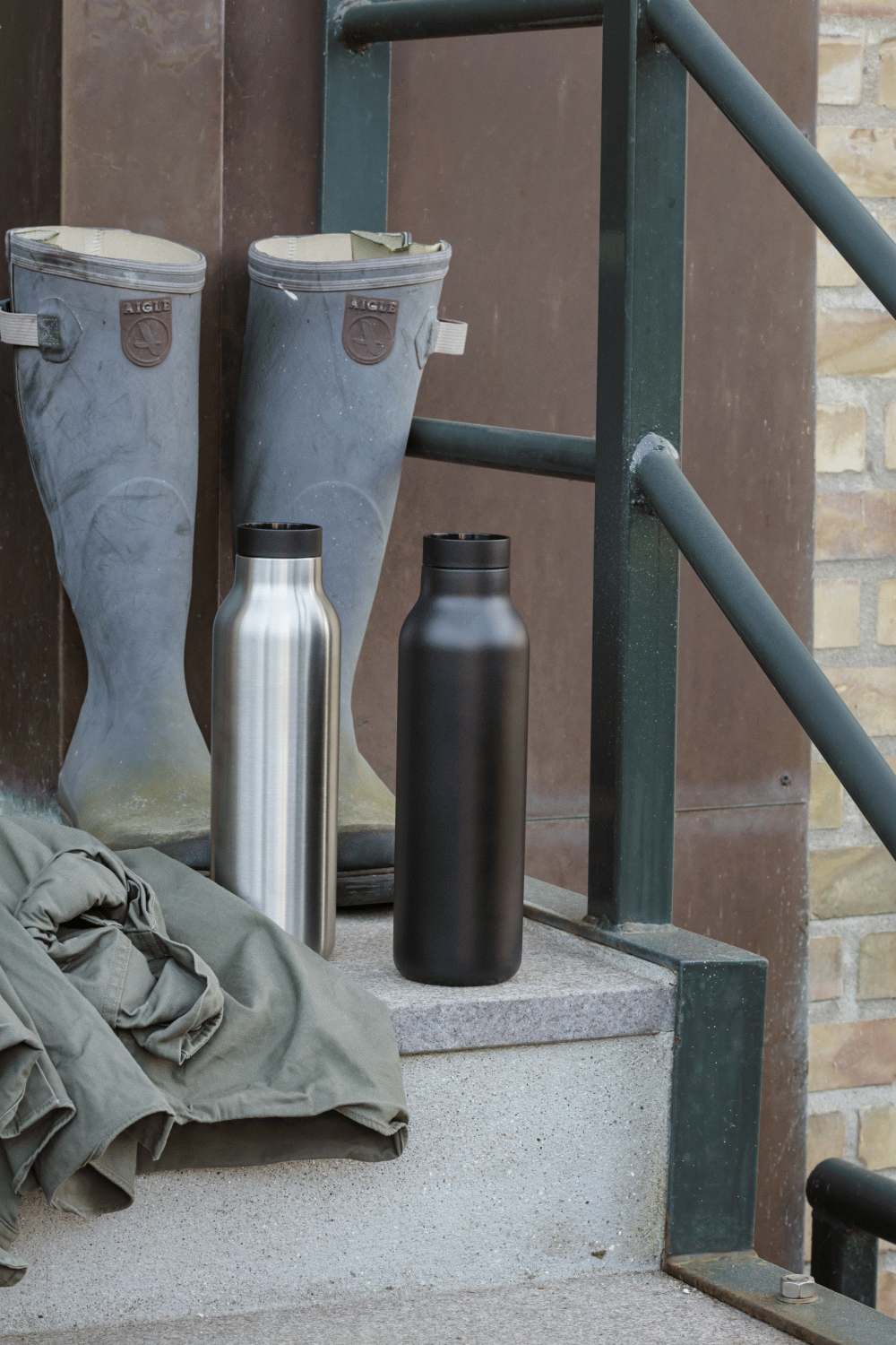 Besonders hervorzuheben ist das nachhaltige Design: Der Flaschenkorpus besteht zu 90 Prozent aus recyceltem Post-Consumer-Edelstahl und unterstreicht damit Eva Solos Engagement für umweltbewusstes Produktdesign. Die elegante Kombination aus Schwarz und Stahl verleiht der Flasche eine zeitlose, skandinavische Ästhetik, die sowohl im Büro als auch beim Sport eine gute Figur macht.